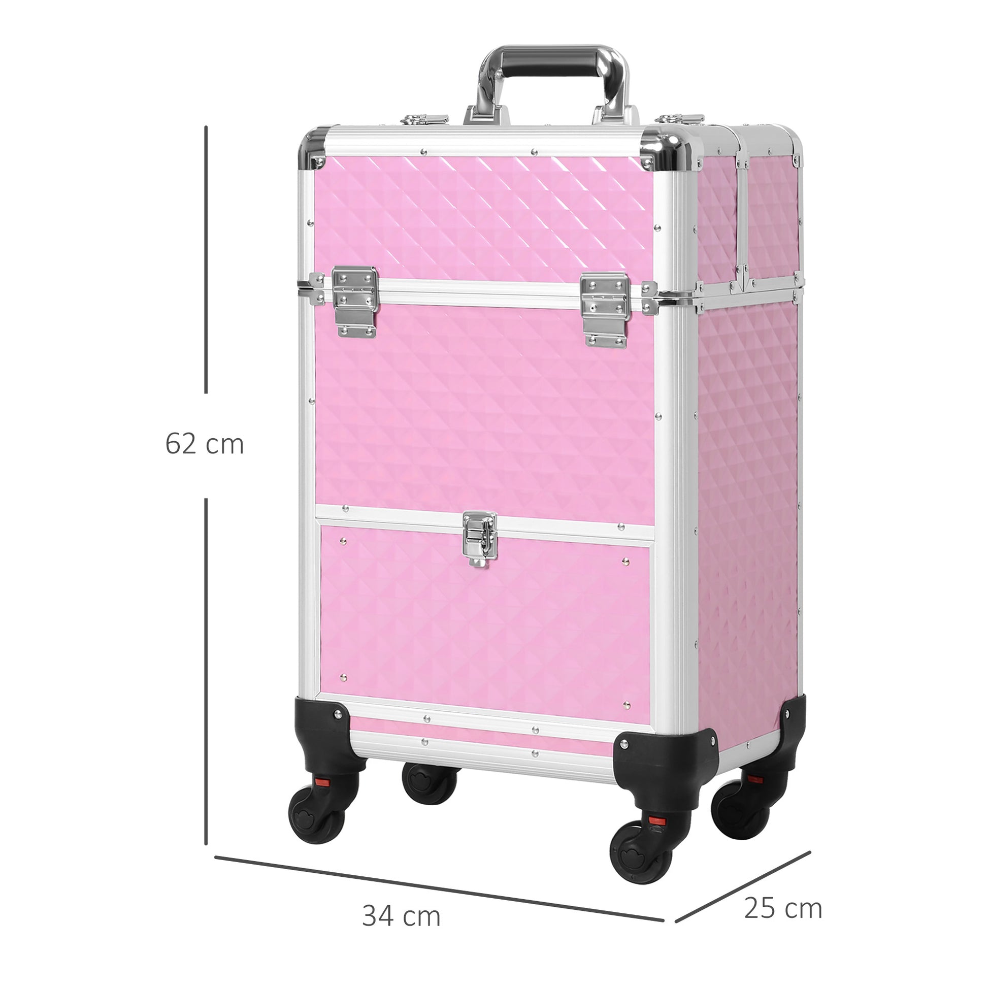 Mala de Maquilhagem Profissional – 34x25x62 cm – Rosa – Liga de alumínio, ABS e feltro