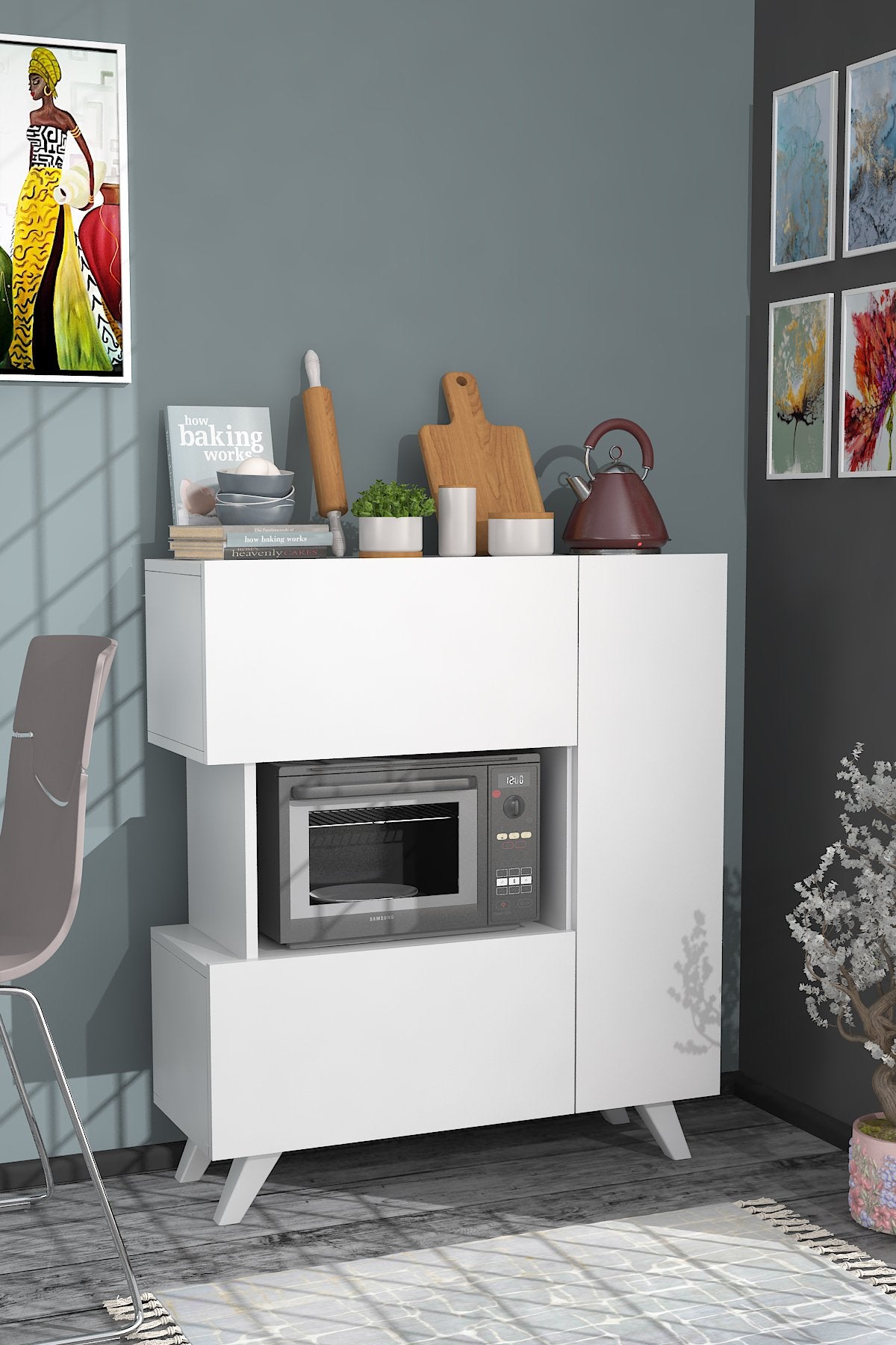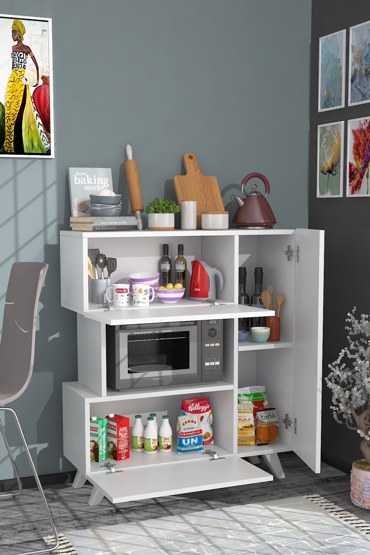 O nosso armário multiusos não é apenas esteticamente agradável, mas também muito prático. Pode ser facilmente fixado à parede, proporcionando estabilidade e segurança. Quer opte por utilizá-lo na sala de estar, no quarto ou na cozinha, este armário confere funcionalidade e estilo a qualquer espaço.