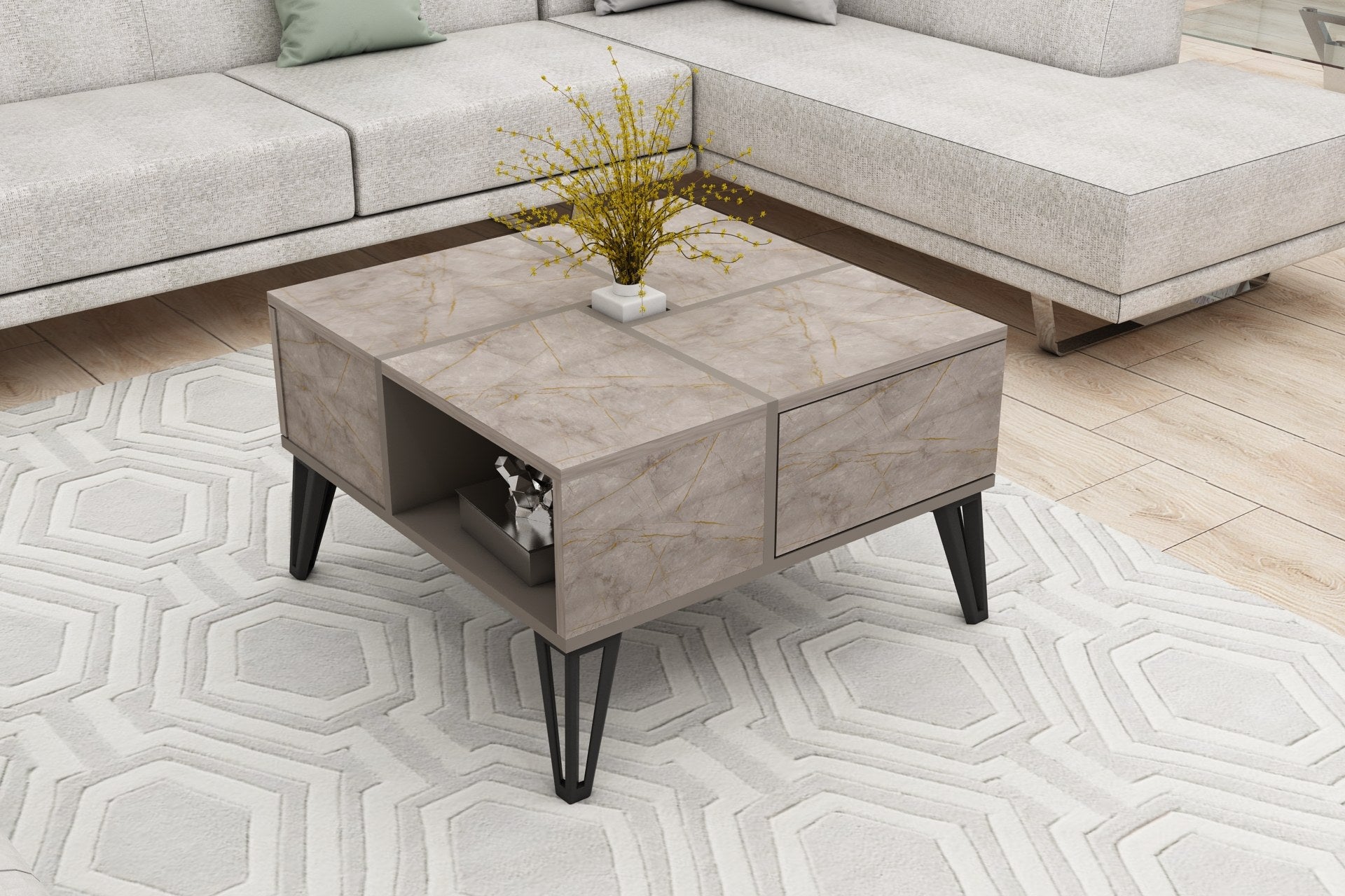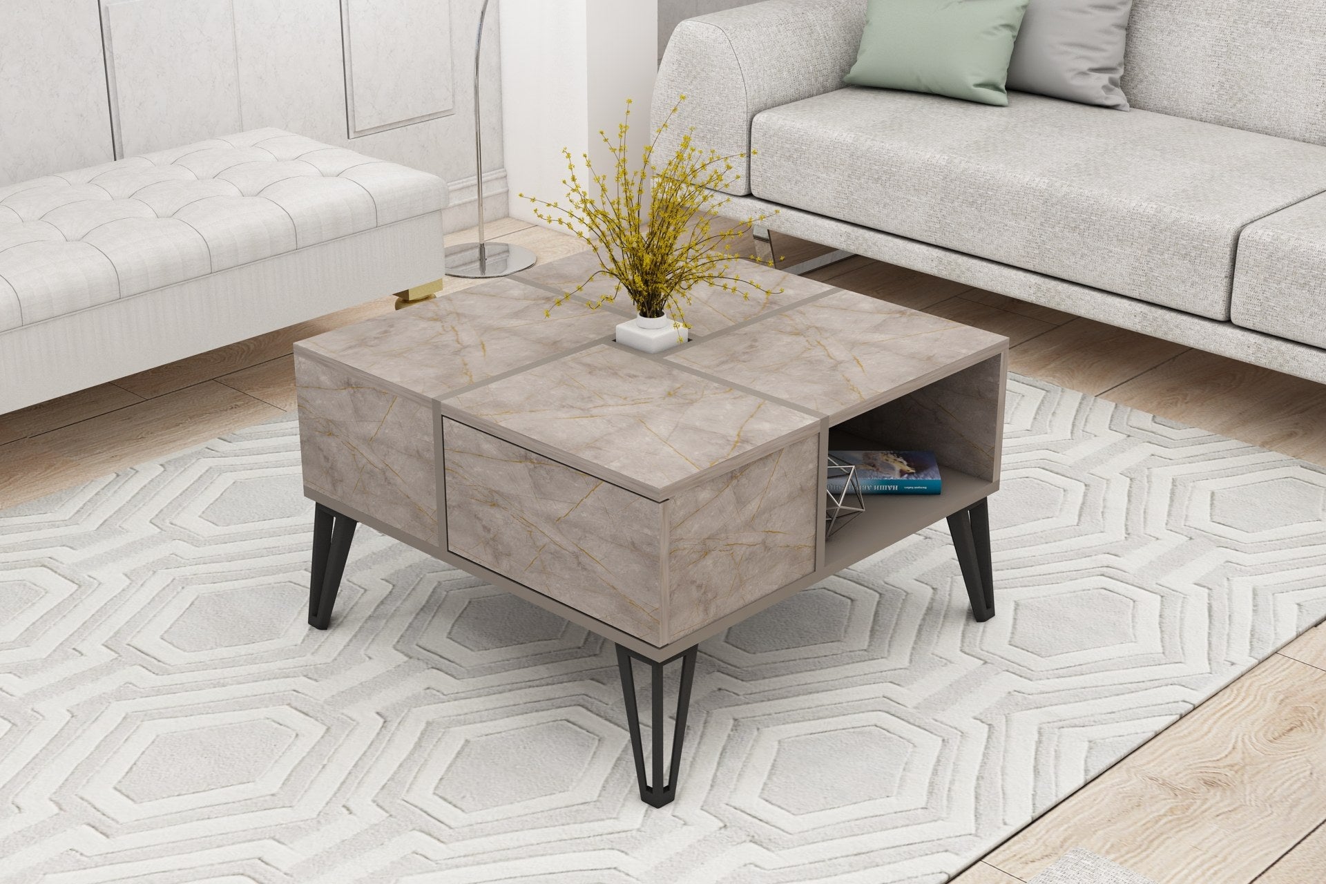Fabricada em painel de partículas 100% revestido a melamina, esta mesa de centro foi construída para durar. A espessura de 18 mm garante robustez e estabilidade, permitindo-lhe desfrutar da sua beleza durante muitos anos. As pernas metálicas não só dão um toque contemporâneo, como também proporcionam um excelente apoio, garantindo que a mesa se mantém estável mesmo durante conversas ou reuniões animadas.