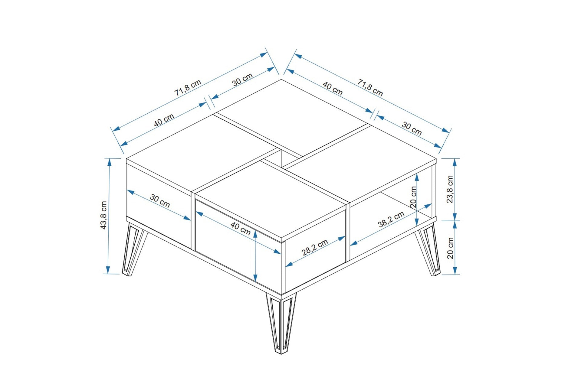 Com uma largura de 71. 8 cm, altura de 43. 8 cm e profundidade de 71. 8 cm, esta mesa de centro oferece um espaço amplo para expor os seus objectos de decoração favoritos ou simplesmente para descansar a sua chávena de café. O seu design versátil torna-a adequada para vários ambientes, quer seja na sua sala de estar, no escritório ou mesmo como peça central no seu pátio exterior.