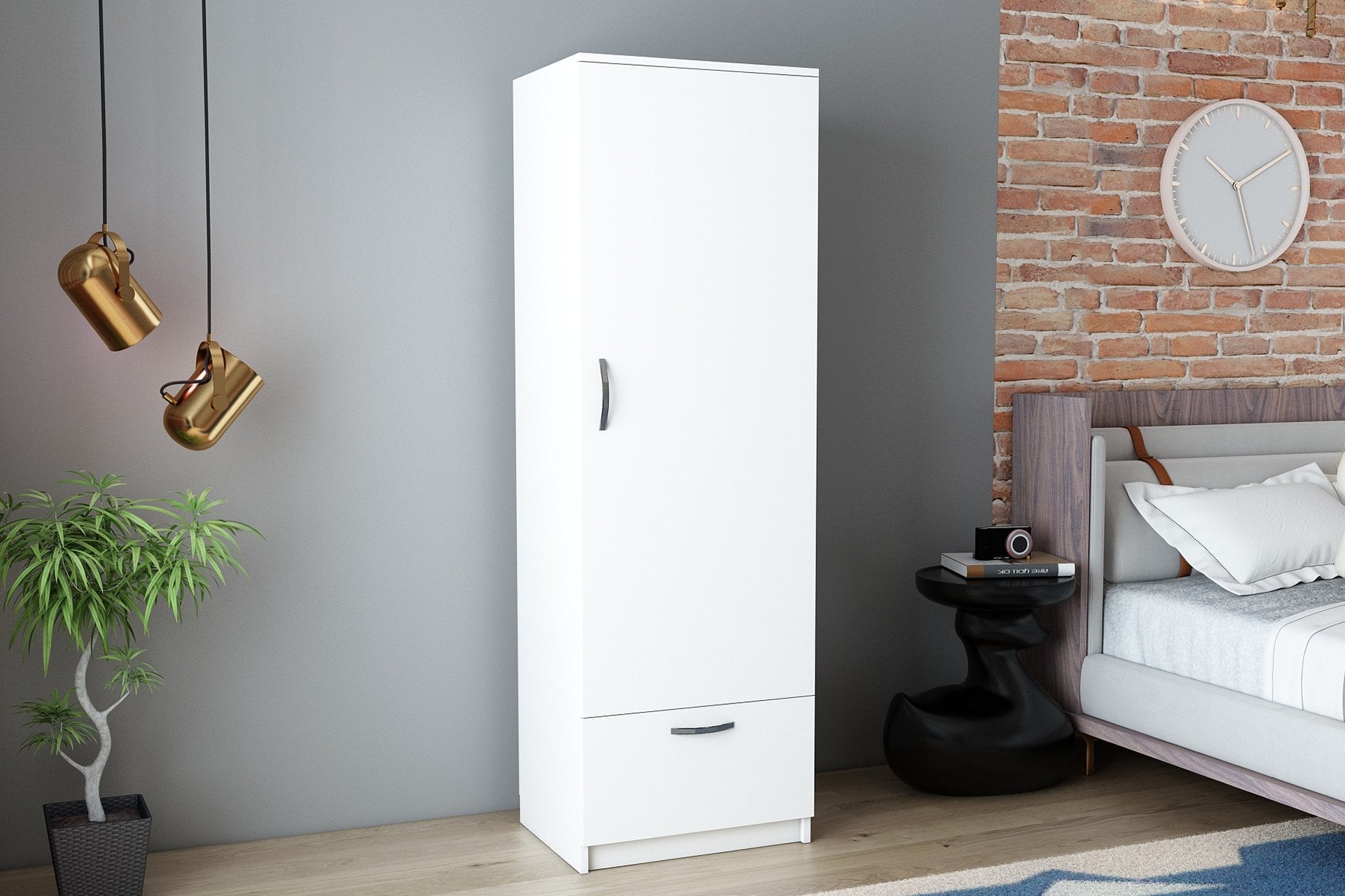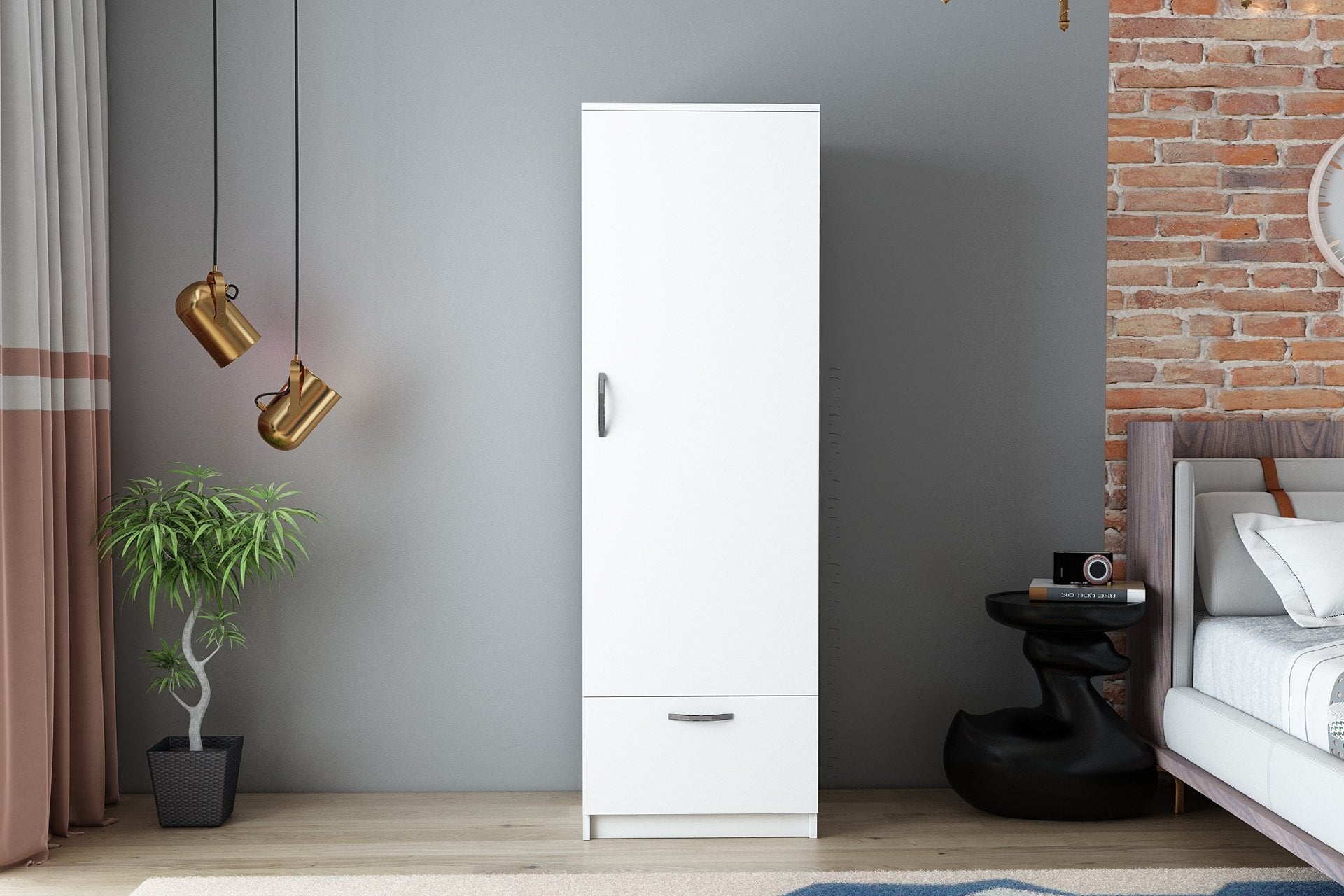 O nosso roupeiro foi concebido para se adaptar perfeitamente a qualquer divisão, independentemente do seu tamanho ou disposição. Com uma largura de 50 cm, uma altura de 187 cm e uma profundidade de 47,1 cm, é suficientemente compacto para caber em espaços apertados, proporcionando simultaneamente uma ampla arrumação. Além disso, pode ser facilmente fixado à parede, garantindo estabilidade e segurança.