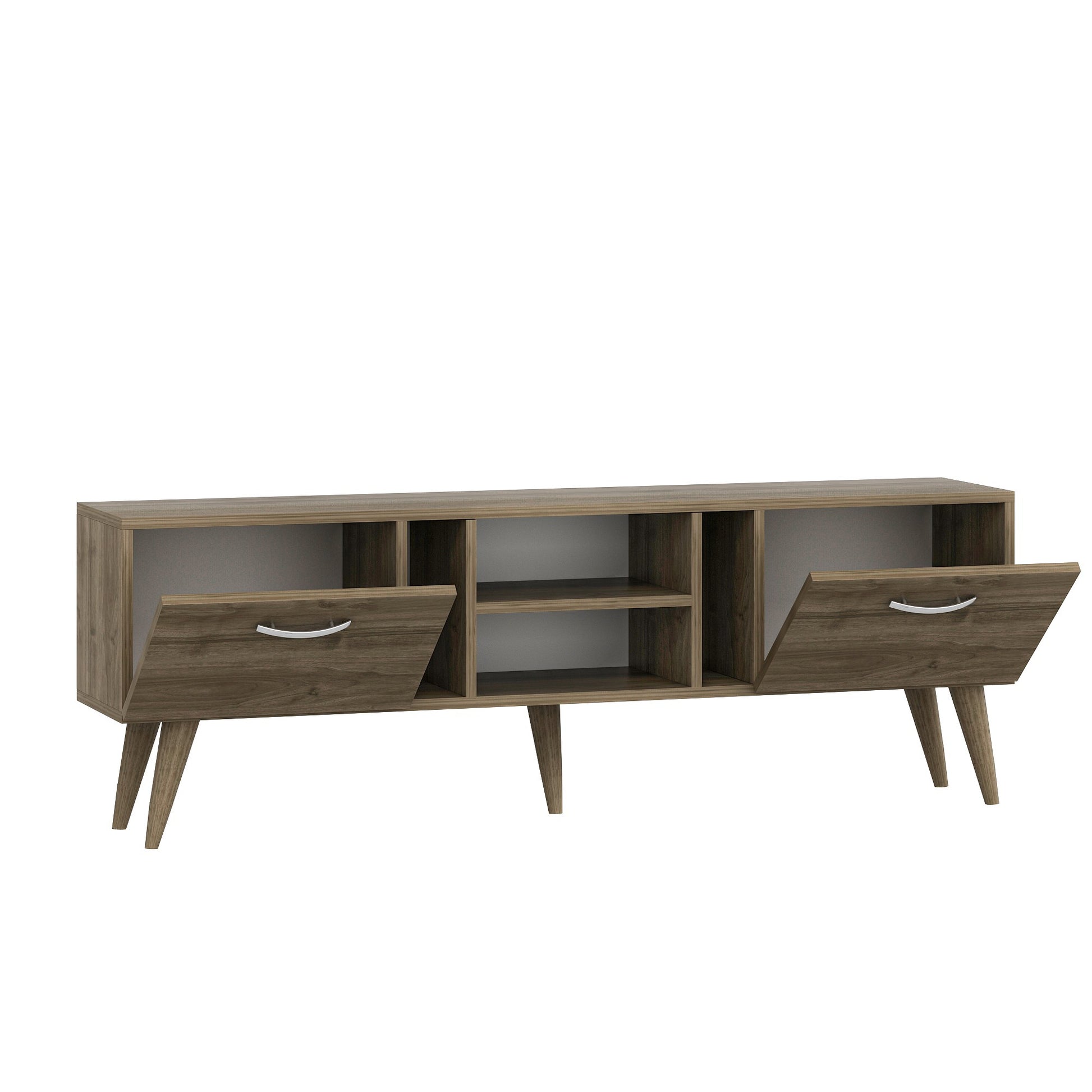Com uma deslumbrante cor de nogueira, a nossa mesa de TV combina facilmente com qualquer estilo de interior, seja ele moderno, contemporâneo ou tradicional. O seu design elegante e sofisticado dá um toque de classe à sua sala de estar, tornando-a o ponto focal do seu espaço. Melhore a sua experiência de entretenimento em casa e dê um toque de elegância à sua sala de estar.