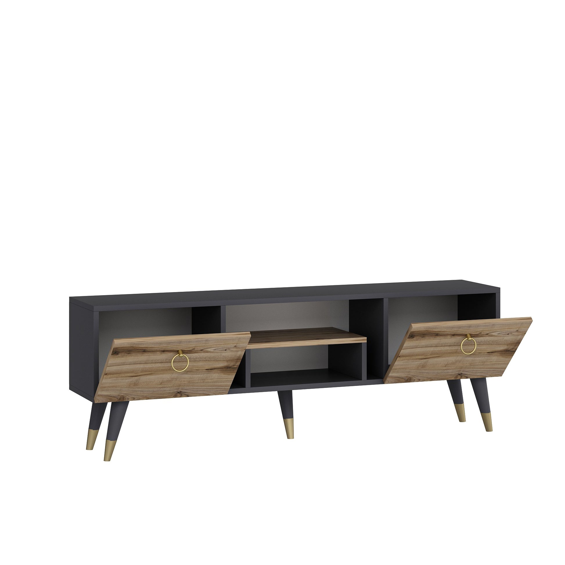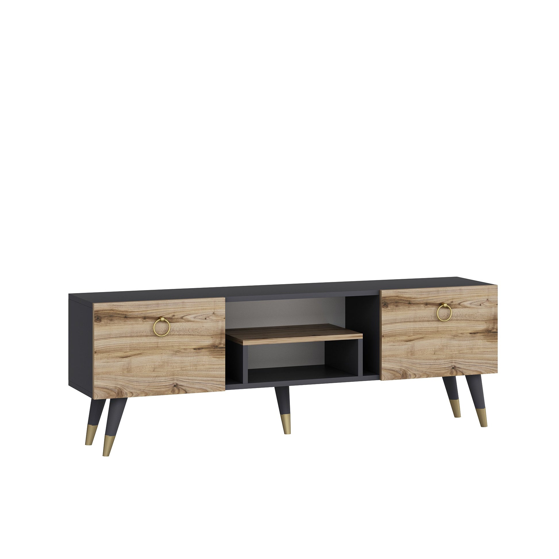 Compreendemos que cada indivíduo tem o seu próprio estilo e gosto únicos. É por isso que a nossa mesa de TV está disponível numa impressionante combinação de cores de nogueira e antracite. Quer prefira um ambiente acolhedor e convidativo ou um aspeto elegante e contemporâneo, a nossa mesa de TV é o complemento perfeito para a sua casa.