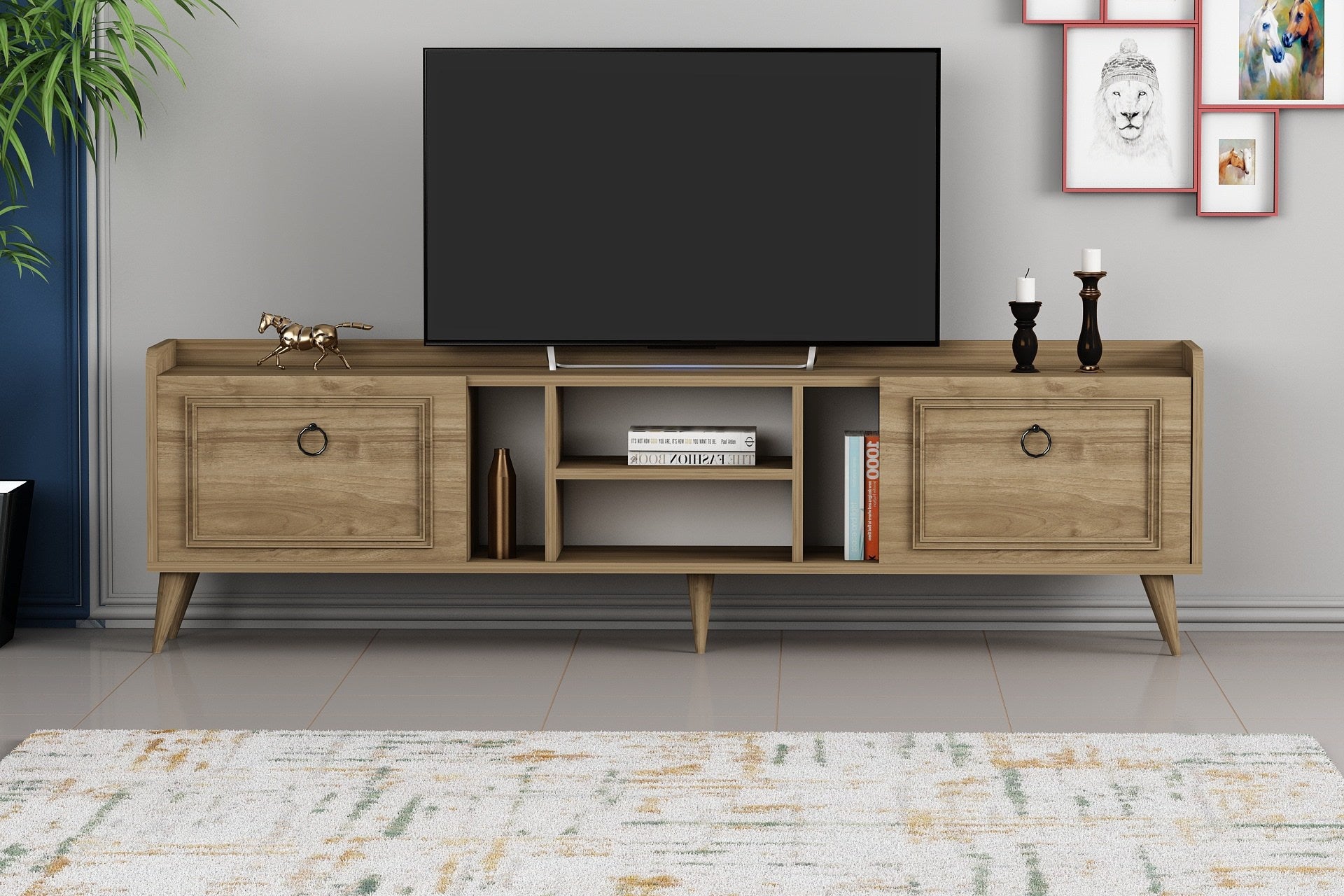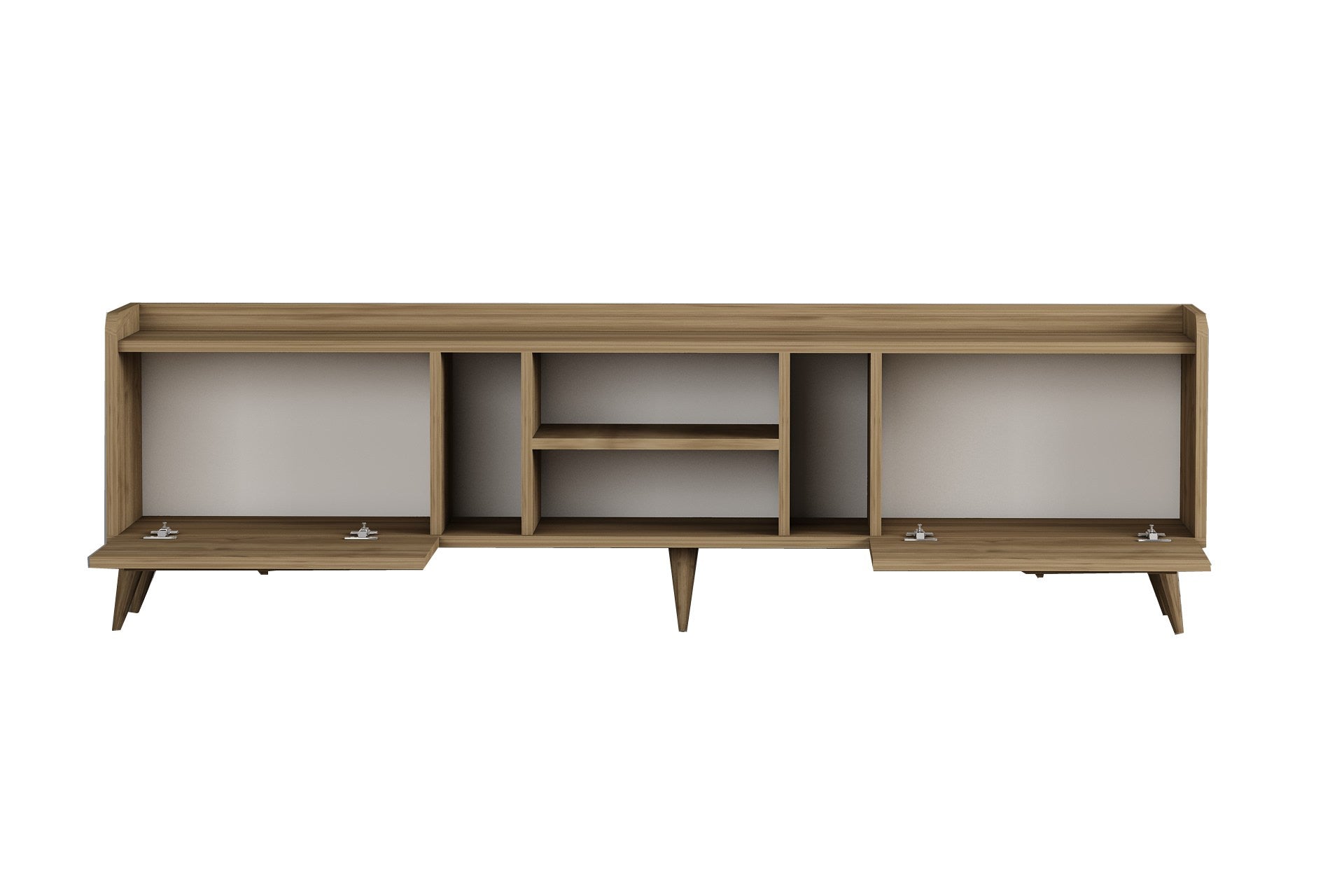 Construído com painéis de partículas 100% revestidos a melamina, o nosso suporte para televisão tem uma durabilidade e longevidade excepcionais. A cor de nogueira acrescenta um toque de sofisticação, combinando sem esforço com qualquer estilo de interior. A sua espessura de 18 mm garante robustez, permitindo-lhe exibir com confiança o seu televisor e outros dispositivos electrónicos.