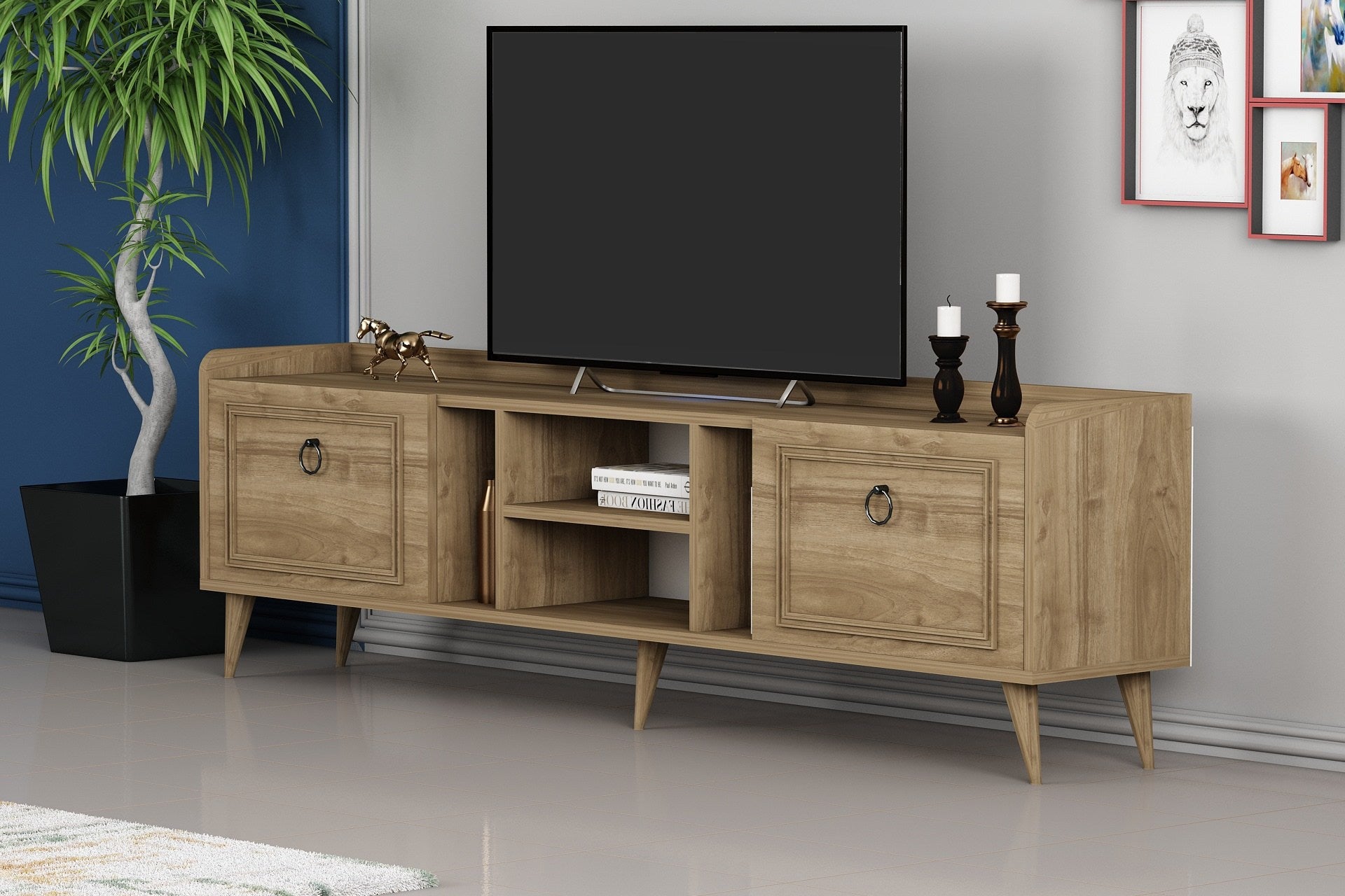 Transforme a sua sala de estar num refúgio cativante com a nossa requintada mesa de TV. Fabricada com a máxima precisão, esta peça de mobiliário foi concebida para elevar a decoração da sua casa, proporcionando um amplo espaço de arrumação para todos os seus objectos essenciais de entretenimento.