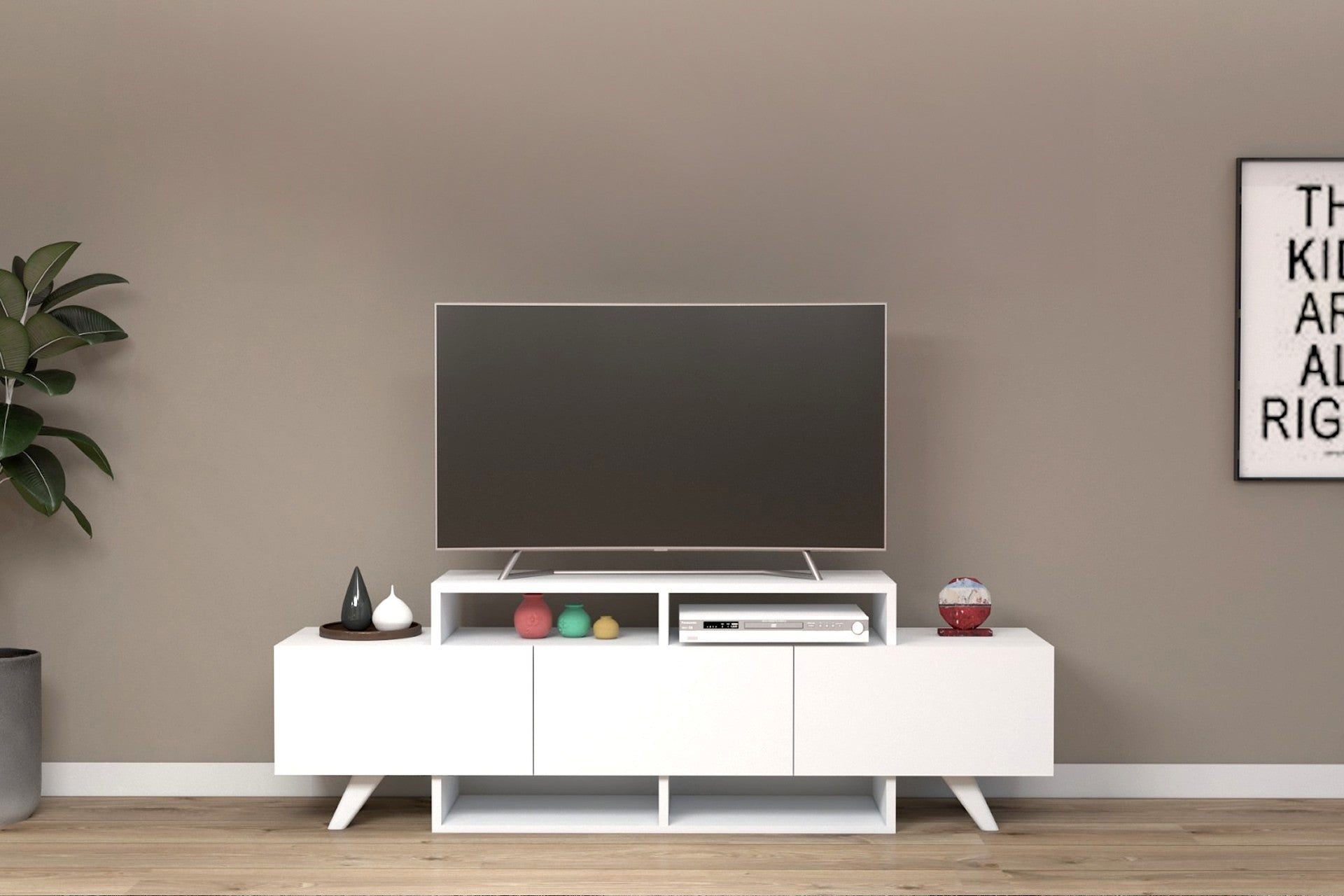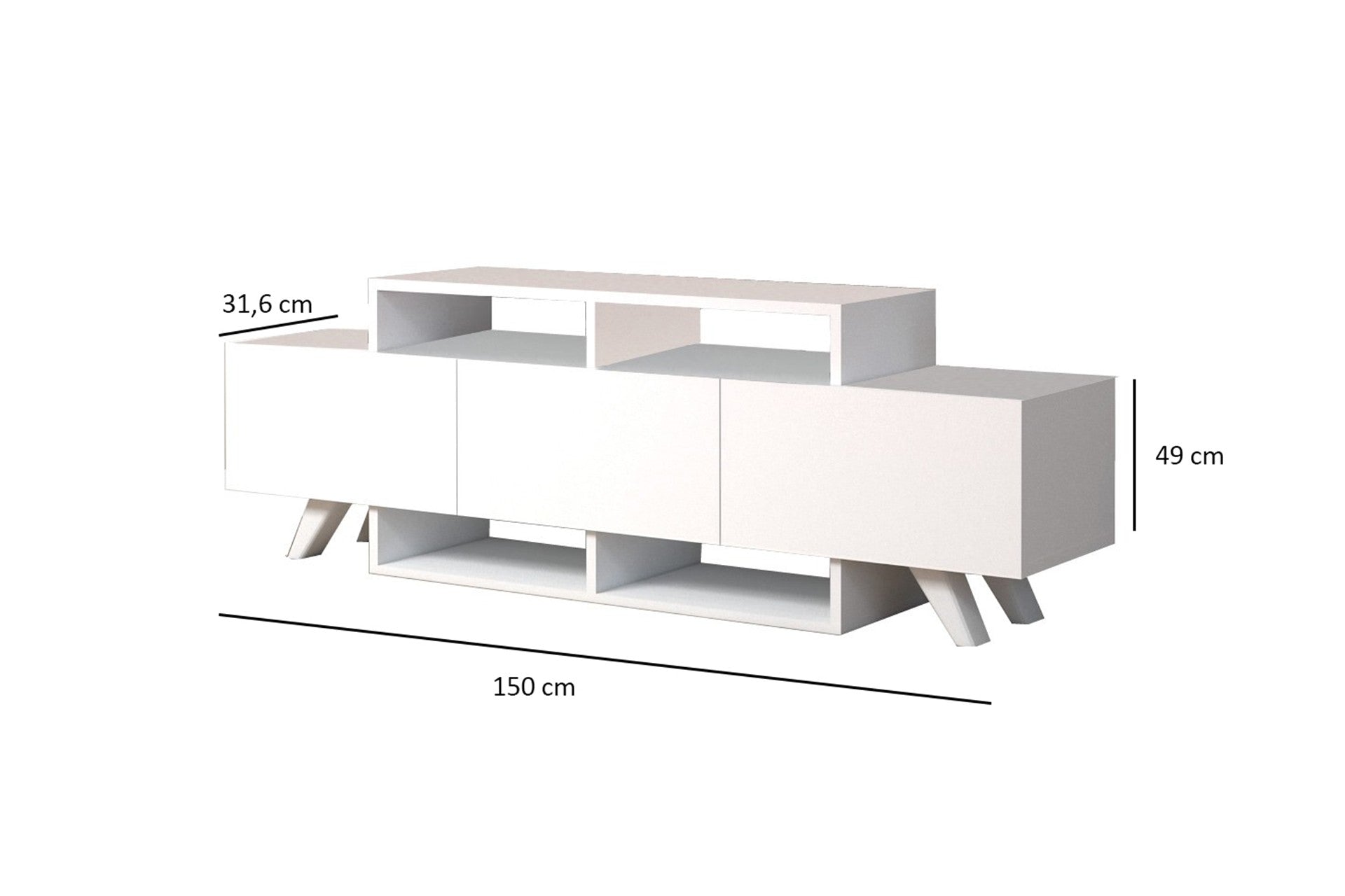 Diga adeus à desarrumação e olá à sofisticação com a nossa mesa de TV. As suas linhas simples e a cor branca fazem dele o complemento perfeito para qualquer decoração moderna. A espessura de 18 mm confere robustez e estabilidade, enquanto as dimensões generosas de 150 cm de largura, 49 cm de altura e 31. 6 cm de profundidade proporcionam um espaço amplo para o seu televisor e dispositivos multimédia.