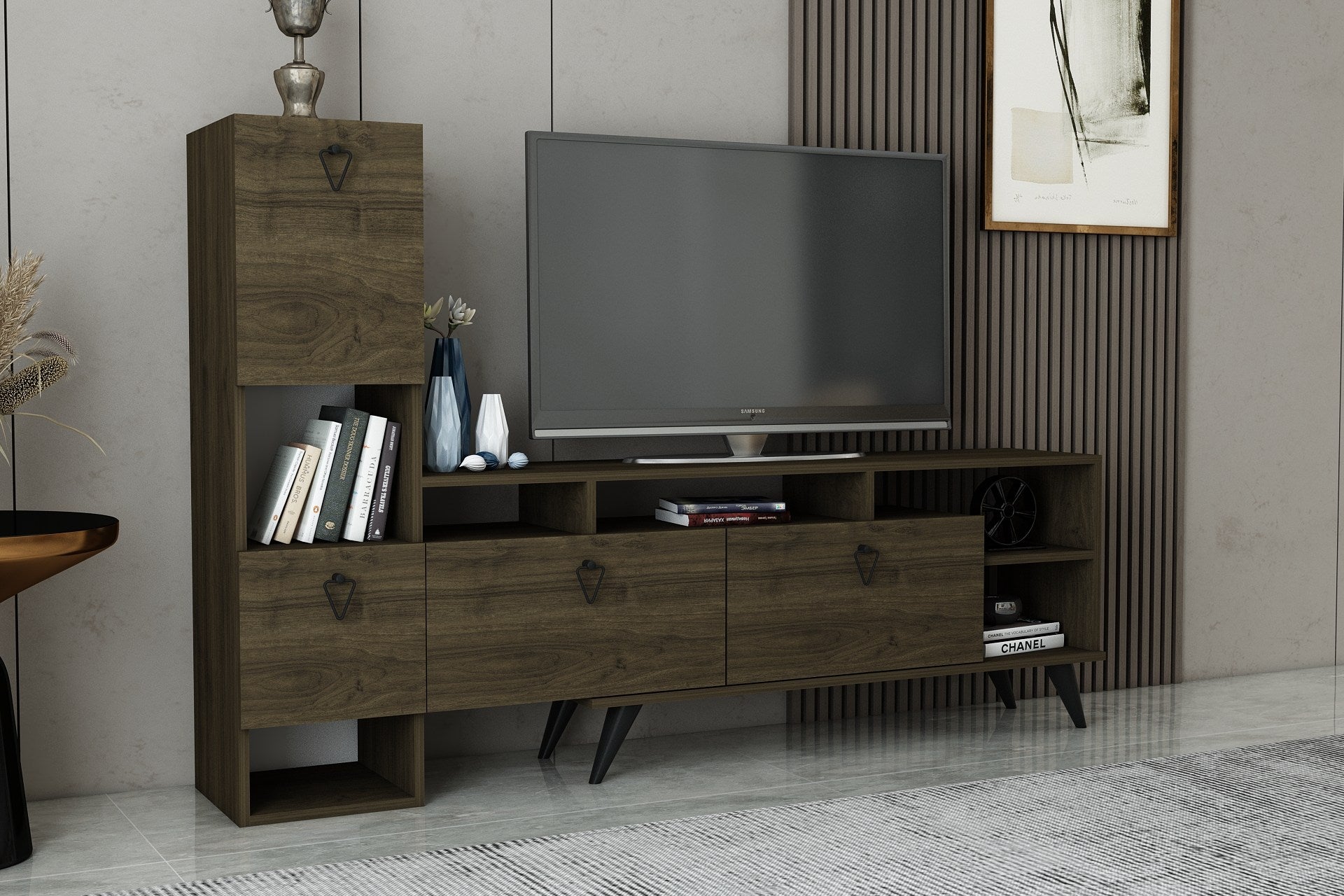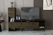 Transforme a sua sala de estar num espaço elegante e funcional com o nosso impressionante móvel para televisão em cor de nogueira. Este móvel de TV não é apenas uma peça de mobiliário, é uma afirmação de elegância e sofisticação. O design elegante e a cor rica irão elevar instantaneamente o aspeto da sua sala, tornando-a no ponto focal da sua casa.