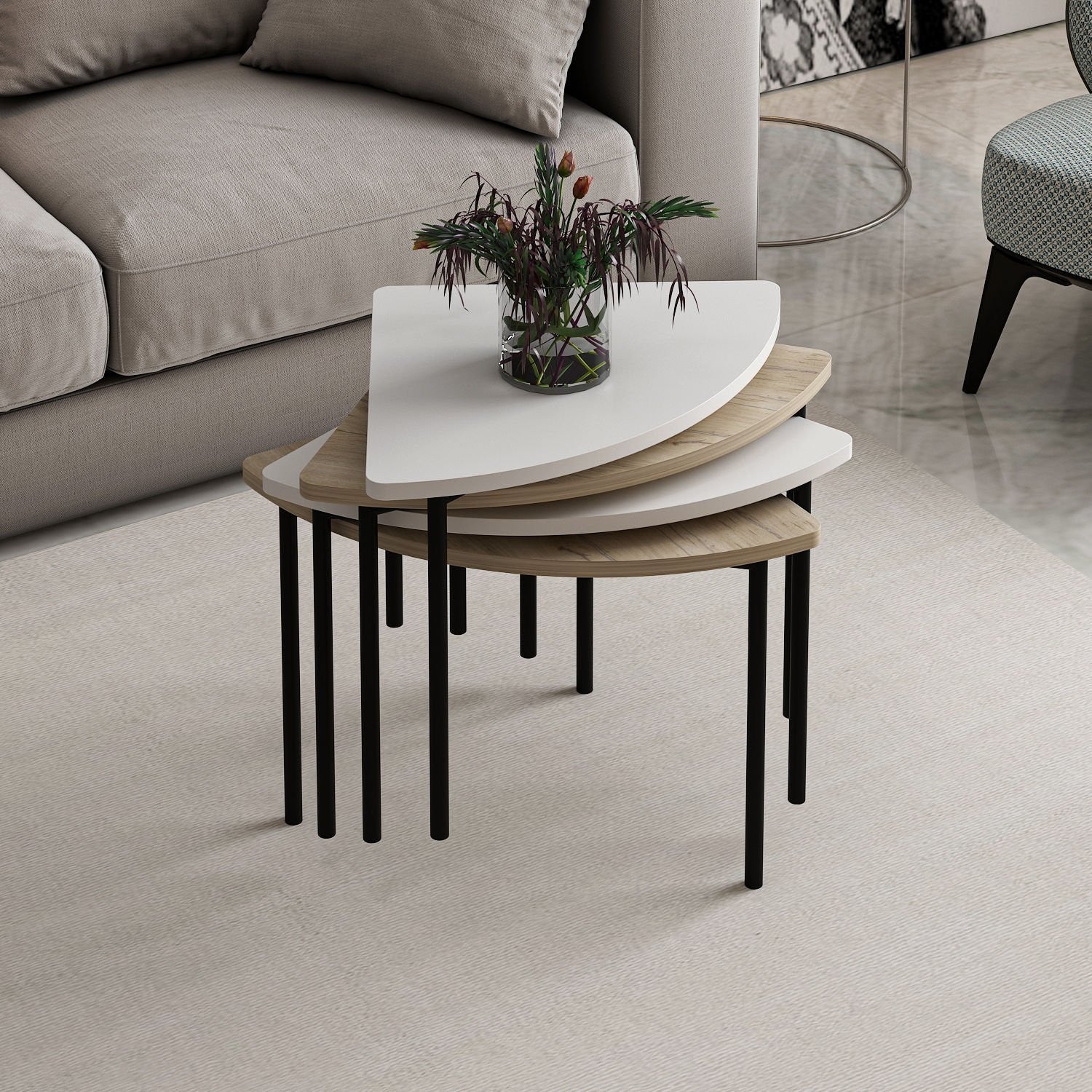 Mesa de Centro – 90 x 60 x 28,6 cm – Pinho Atlântico e Branco – Painel de Partículas revestido a Melamina
