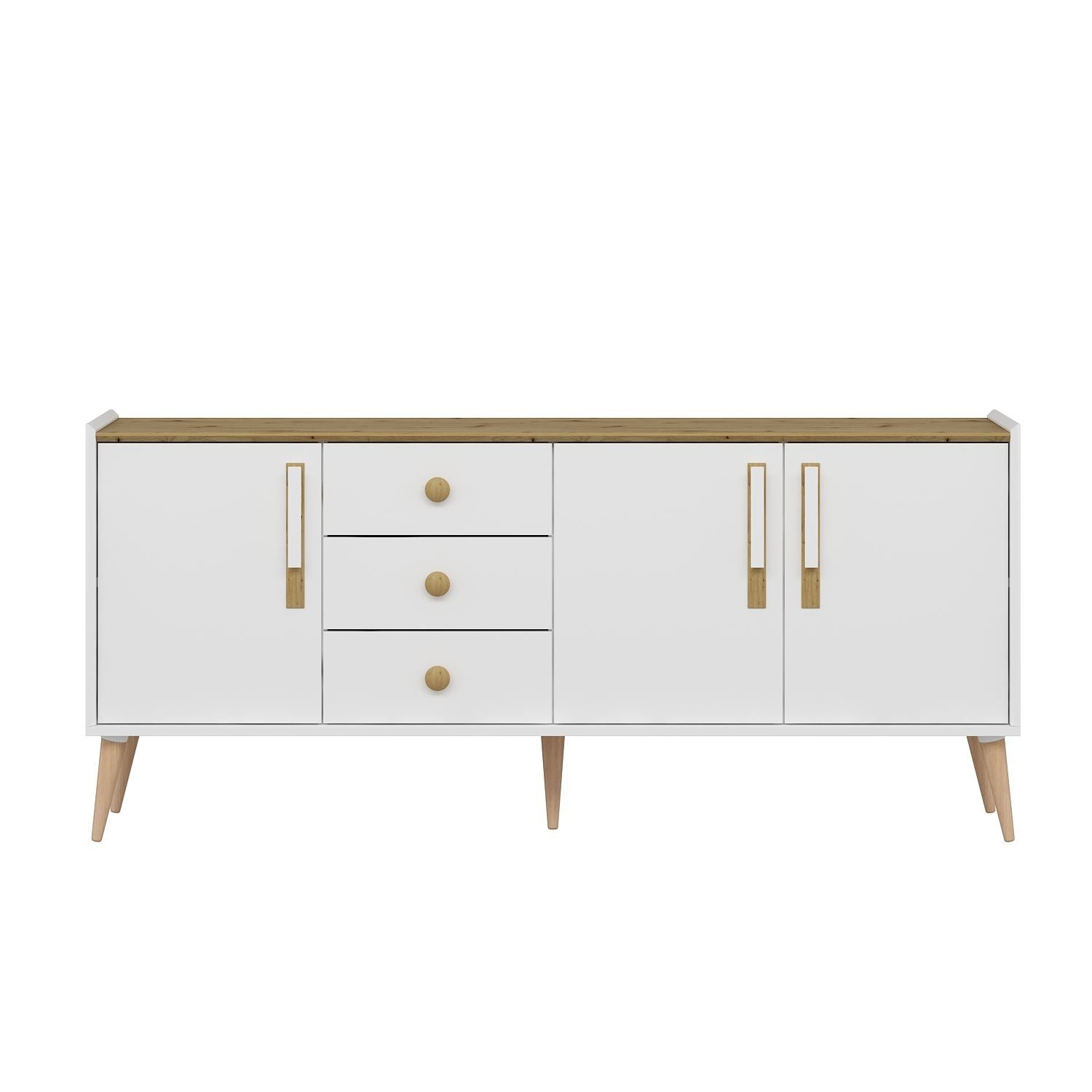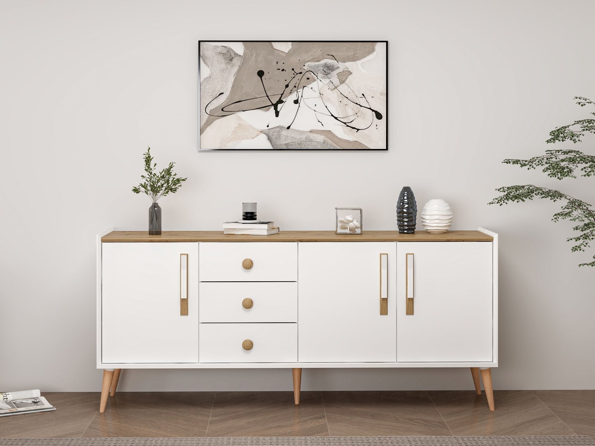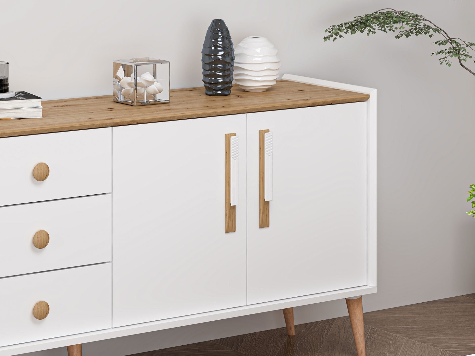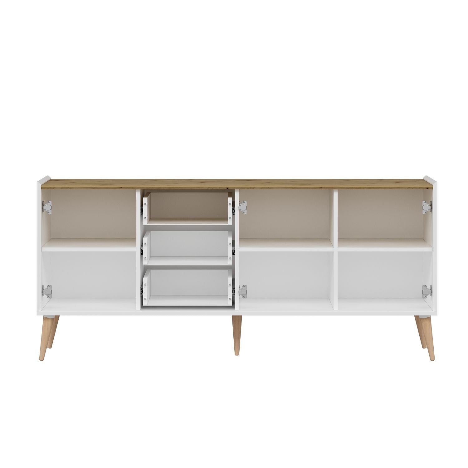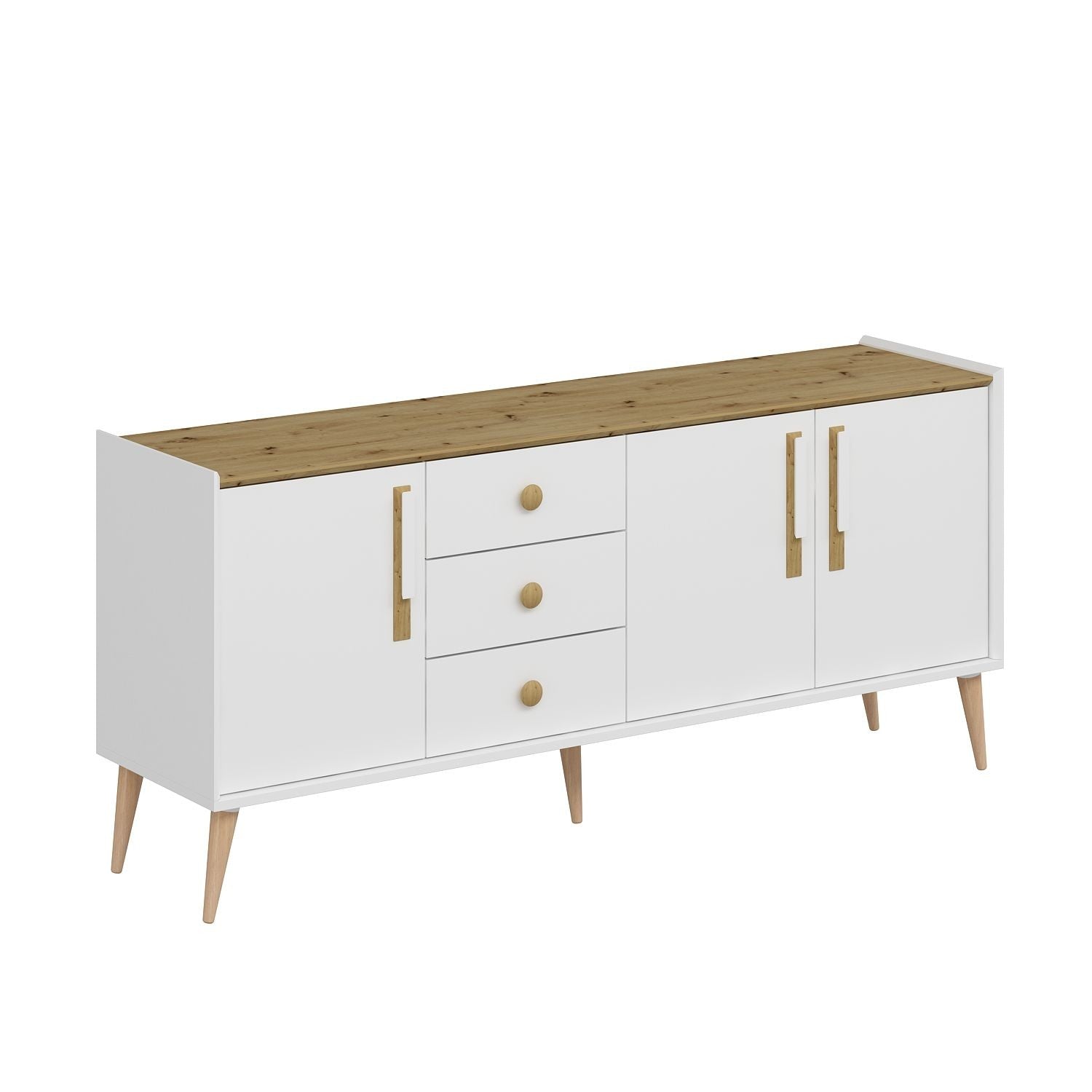 A consola apresenta um acabamento branco elegante que complementa sem esforço qualquer estilo de decoração. As pernas de madeira dão um toque de sofisticação, enquanto as linhas simples e o design minimalista criam um aspeto contemporâneo que não deixará de impressionar.