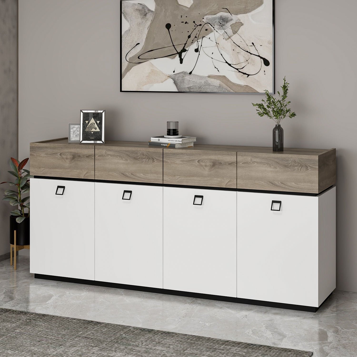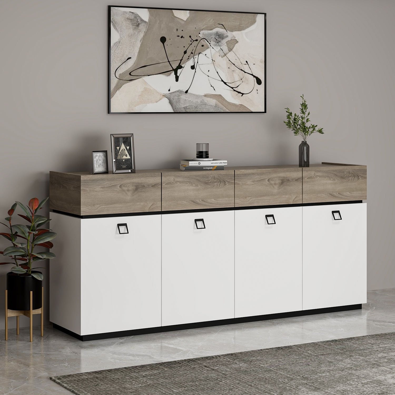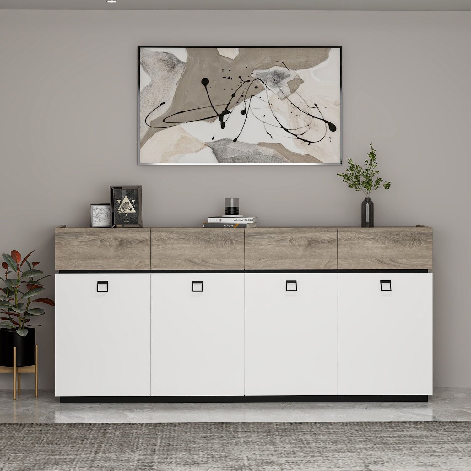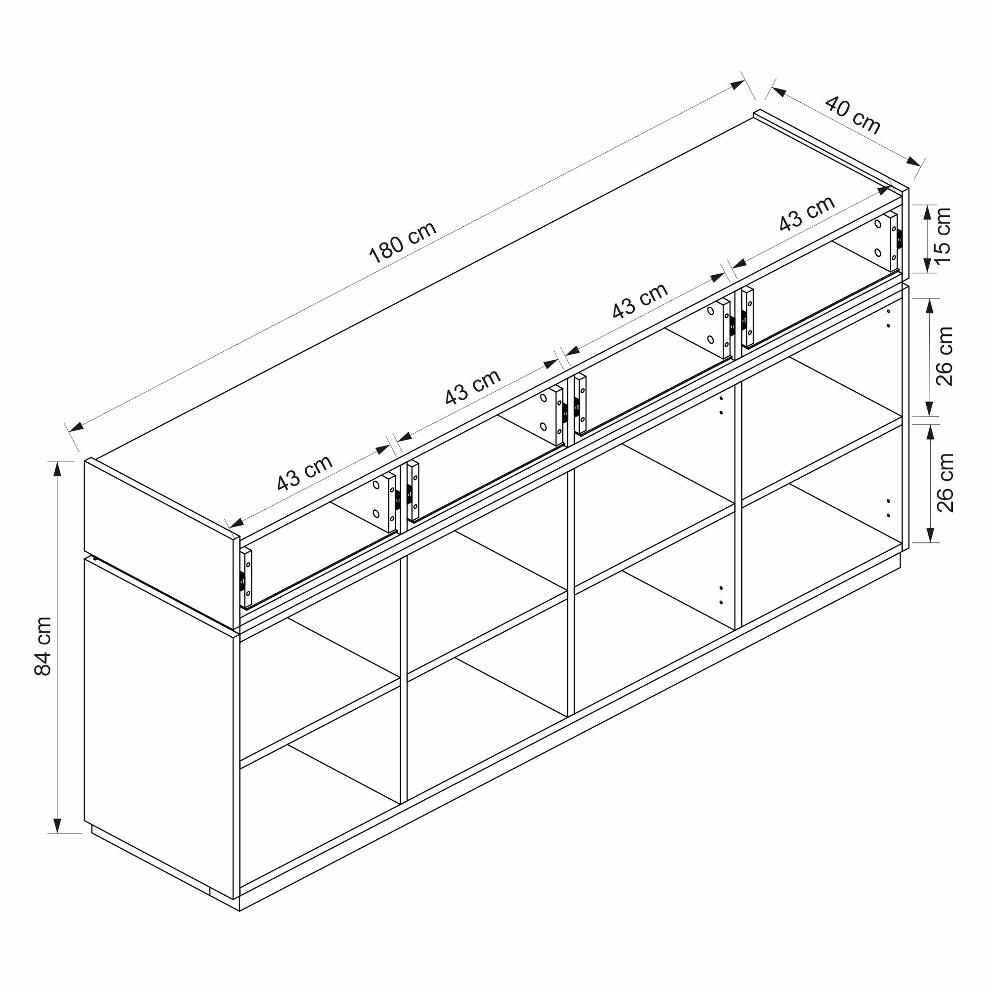 Transforme o seu espaço de vida com a nossa consola elegante e moderna, fabricada em painel de partículas 100% revestido a melamina. A combinação perfeita de estilo e funcionalidade, esta consola apresenta uma largura generosa de 180 cm, uma altura de 84 cm e uma profundidade de 40 cm, proporcionando um amplo espaço de arrumação para todos os seus artigos essenciais.