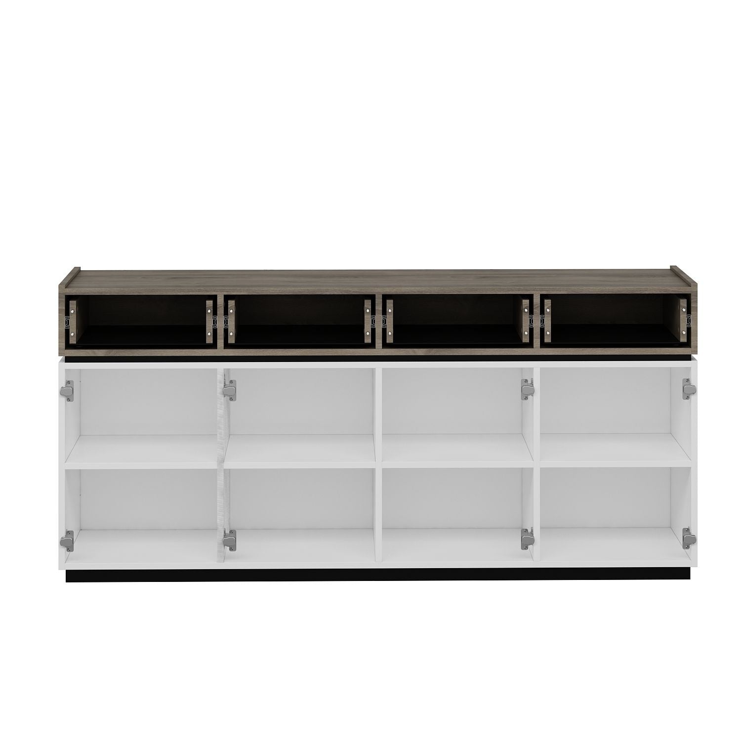 A consola está equipada com várias prateleiras, o que lhe permite organizar e expor os seus pertences com facilidade. Também pode ser fixada à parede para maior estabilidade, tornando-a uma escolha segura para a sua casa.