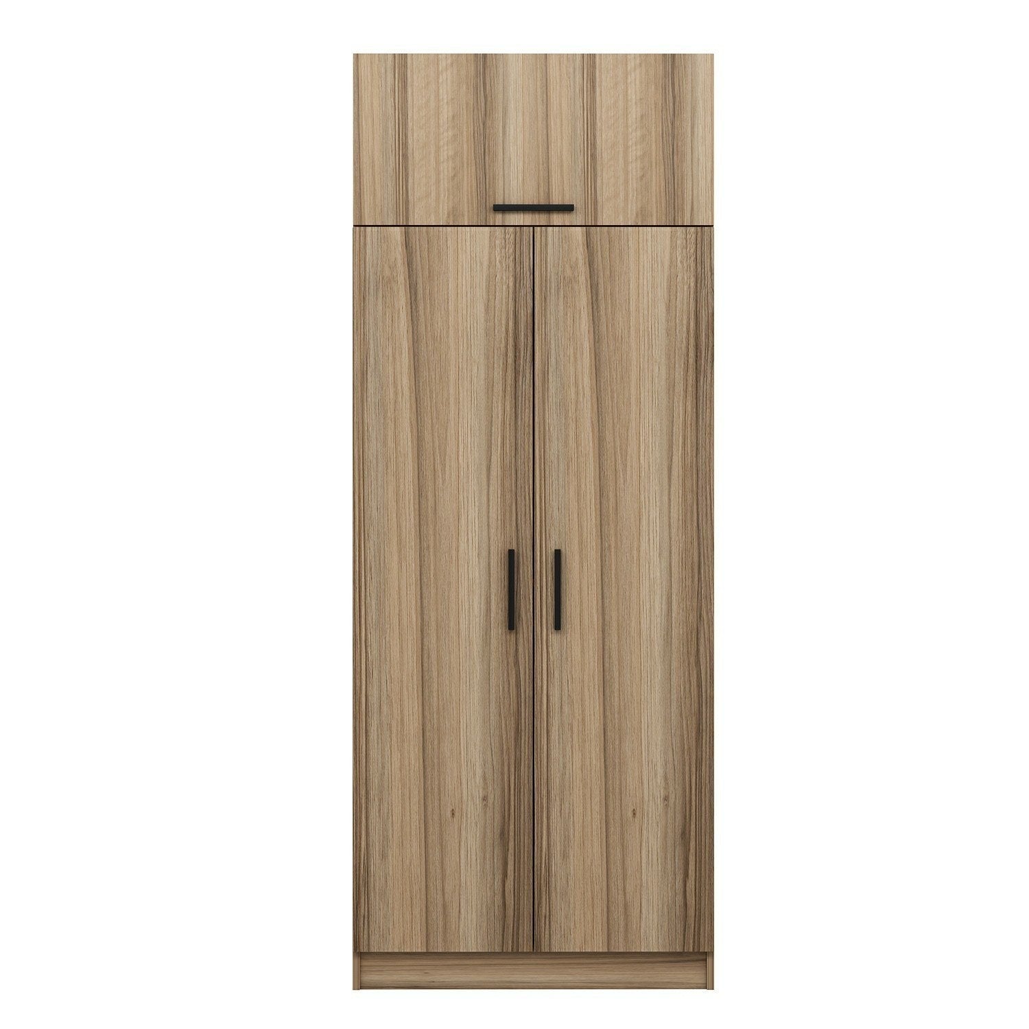 Fabricado com painéis de partículas 100% revestidos a melamina, este roupeiro foi feito para durar. A espessura de 18 mm assegura uma resistência e robustez excepcionais, garantindo anos de utilização fiável. Diga adeus aos roupeiros frágeis que não resistem ao teste do tempo.
