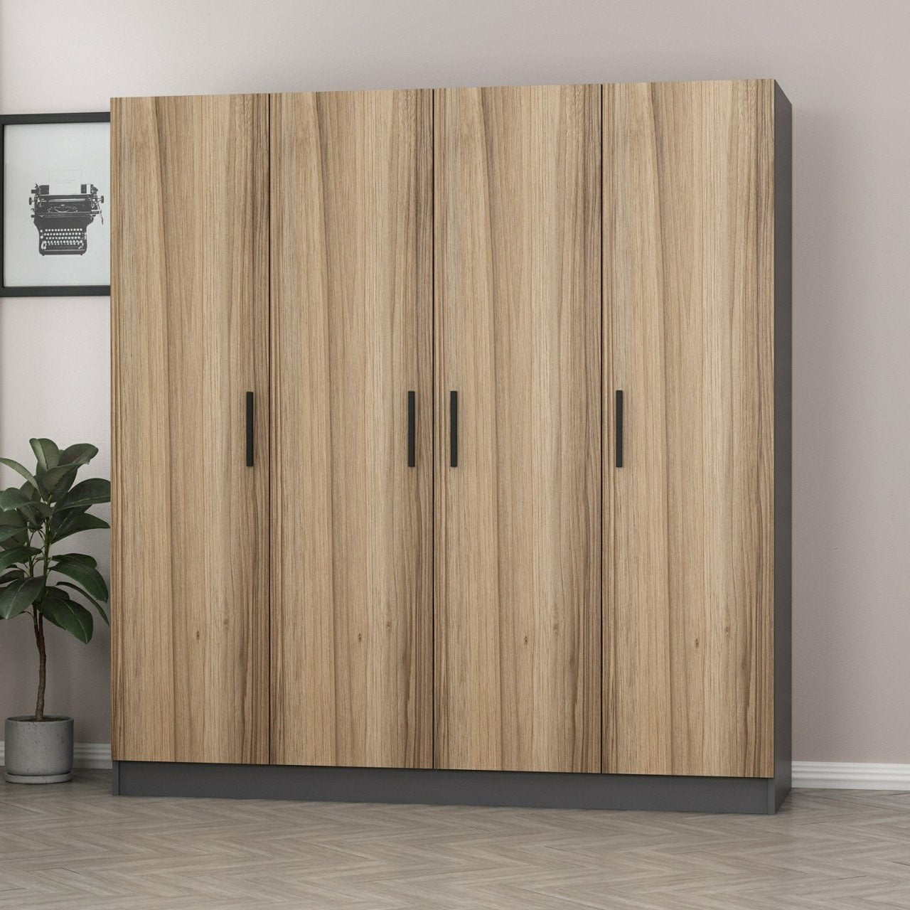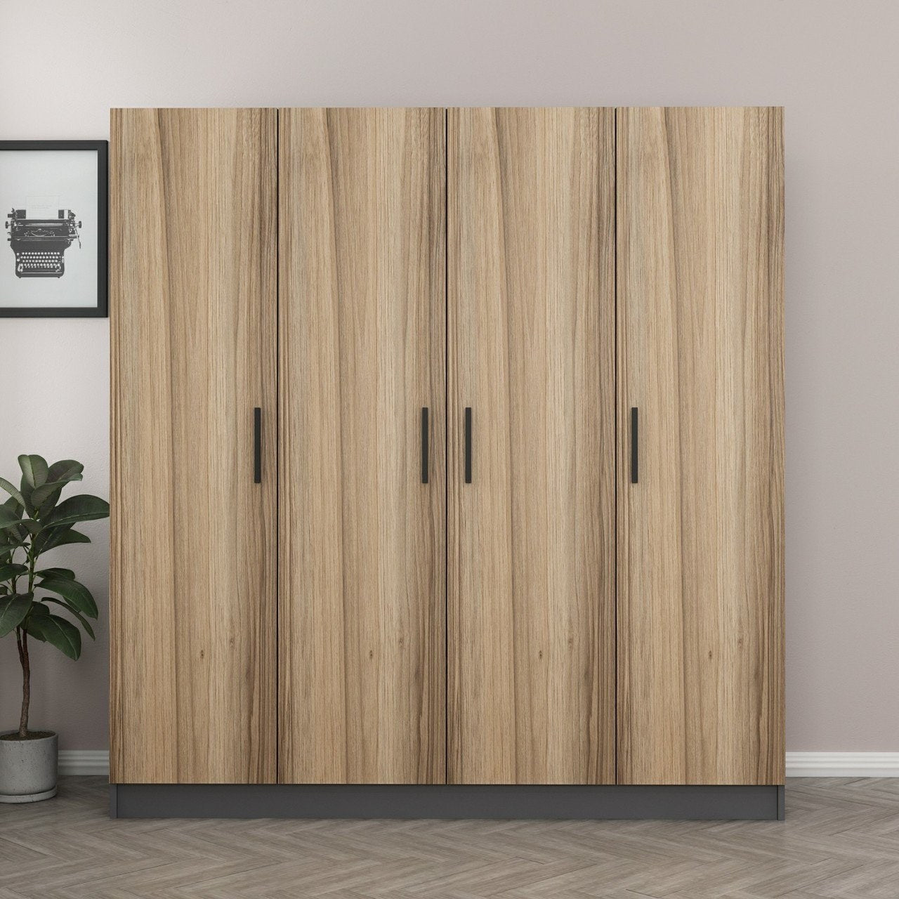 Fabricado a partir de painéis de partículas 100% revestidos a melamina, este roupeiro foi concebido para durar. A espessura de 18 mm garante robustez e estabilidade, proporcionando-lhe uma solução de arrumação fiável para os próximos anos. Diga adeus aos roupeiros frágeis que não resistem ao teste do tempo!