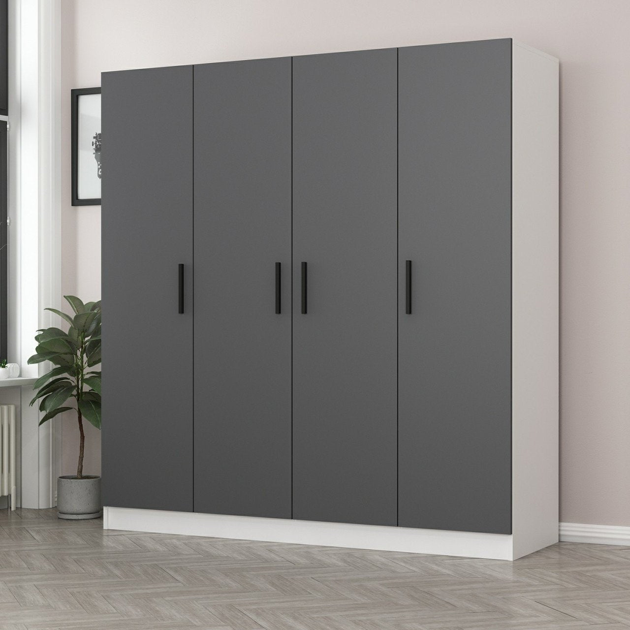 O roupeiro apresenta uma cor antracite deslumbrante, acrescentando um toque de sofisticação e elegância à decoração do seu quarto. O design elegante e moderno combina sem esforço com qualquer estilo de interior, tornando-o numa escolha versátil para qualquer casa.