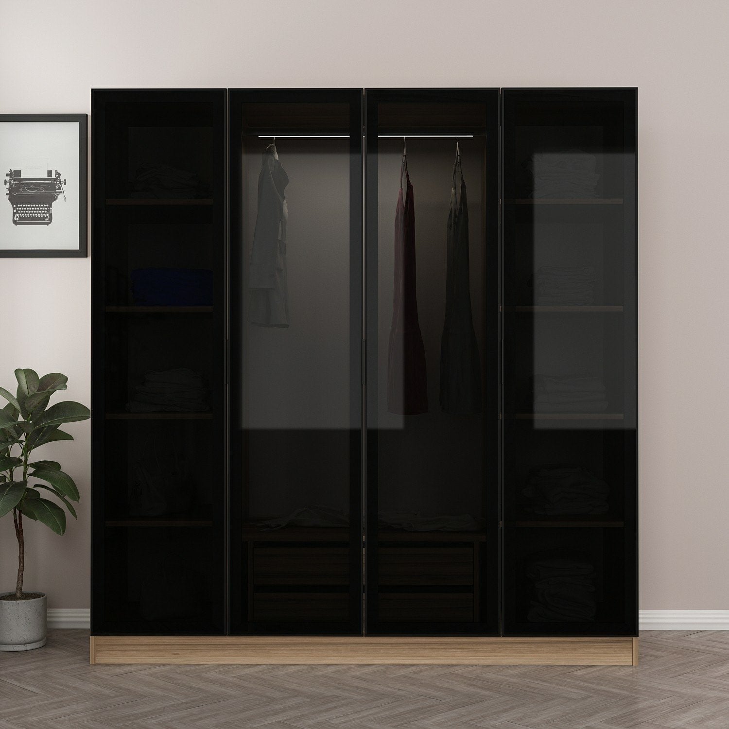 Com o seu design elegante e contemporâneo, este roupeiro integra-se sem esforço em qualquer decoração interior, acrescentando um toque de sofisticação ao seu espaço. A(s) cor(es) fumada(s) deste roupeiro exalam uma sensação de luxo, criando um ponto focal visualmente cativante no seu quarto.