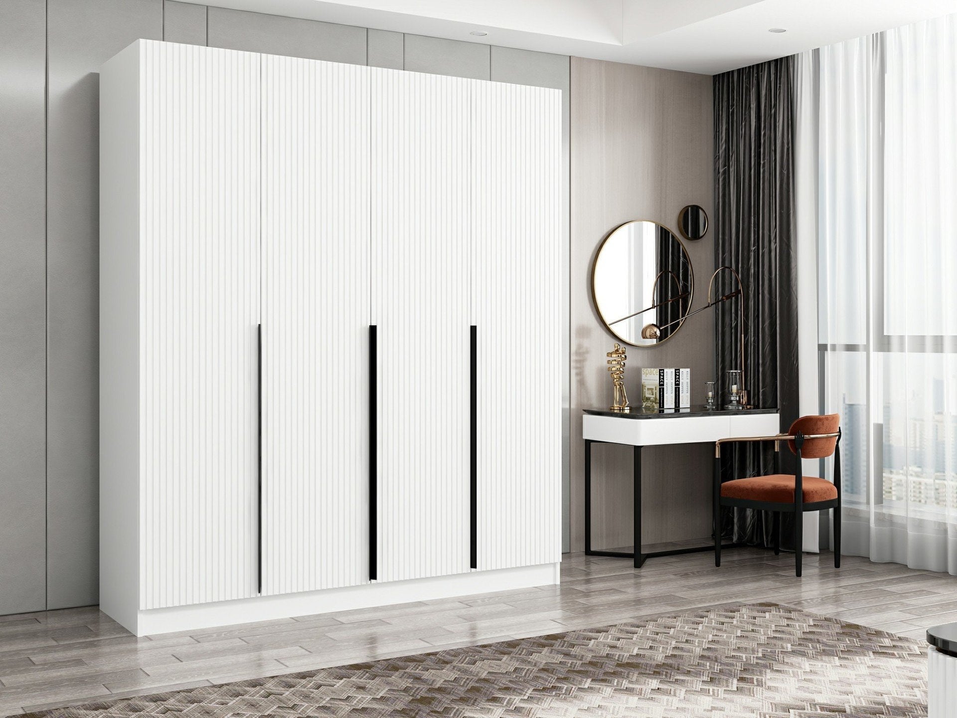 Com o seu design elegante e moderno, o nosso roupeiro integra-se sem esforço na decoração de qualquer quarto. A cor branca nítida acrescenta um toque de elegância, criando uma atmosfera serena e convidativa. Quer tenha um estilo contemporâneo ou tradicional, este roupeiro é o complemento perfeito para melhorar a estética geral do seu quarto.