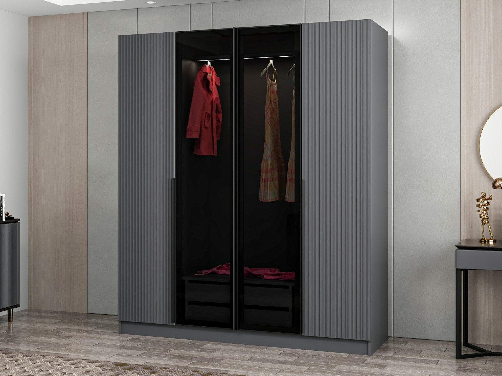 Está cansado do seu quarto desarrumado e desorganizado? Está na altura de trazer elegância e funcionalidade ao seu espaço com o nosso fantástico roupeiro fume. Este roupeiro não é apenas uma peça de mobiliário; é uma afirmação de estilo e sofisticação.