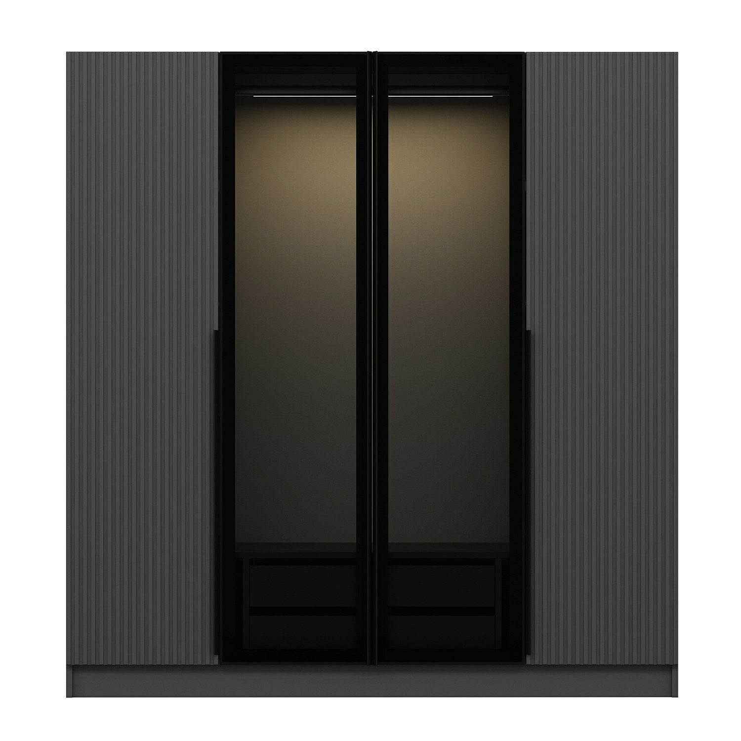 Com as suas dimensões generosas de 180 cm de largura, 210 cm de altura e 52 cm de profundidade, este roupeiro oferece muito espaço para guardar todas as suas roupas, acessórios e muito mais. Já não tem de se esforçar para encontrar um lugar para os seus pertences - o nosso roupeiro de fumos tem várias prateleiras para manter tudo organizado e facilmente acessível.