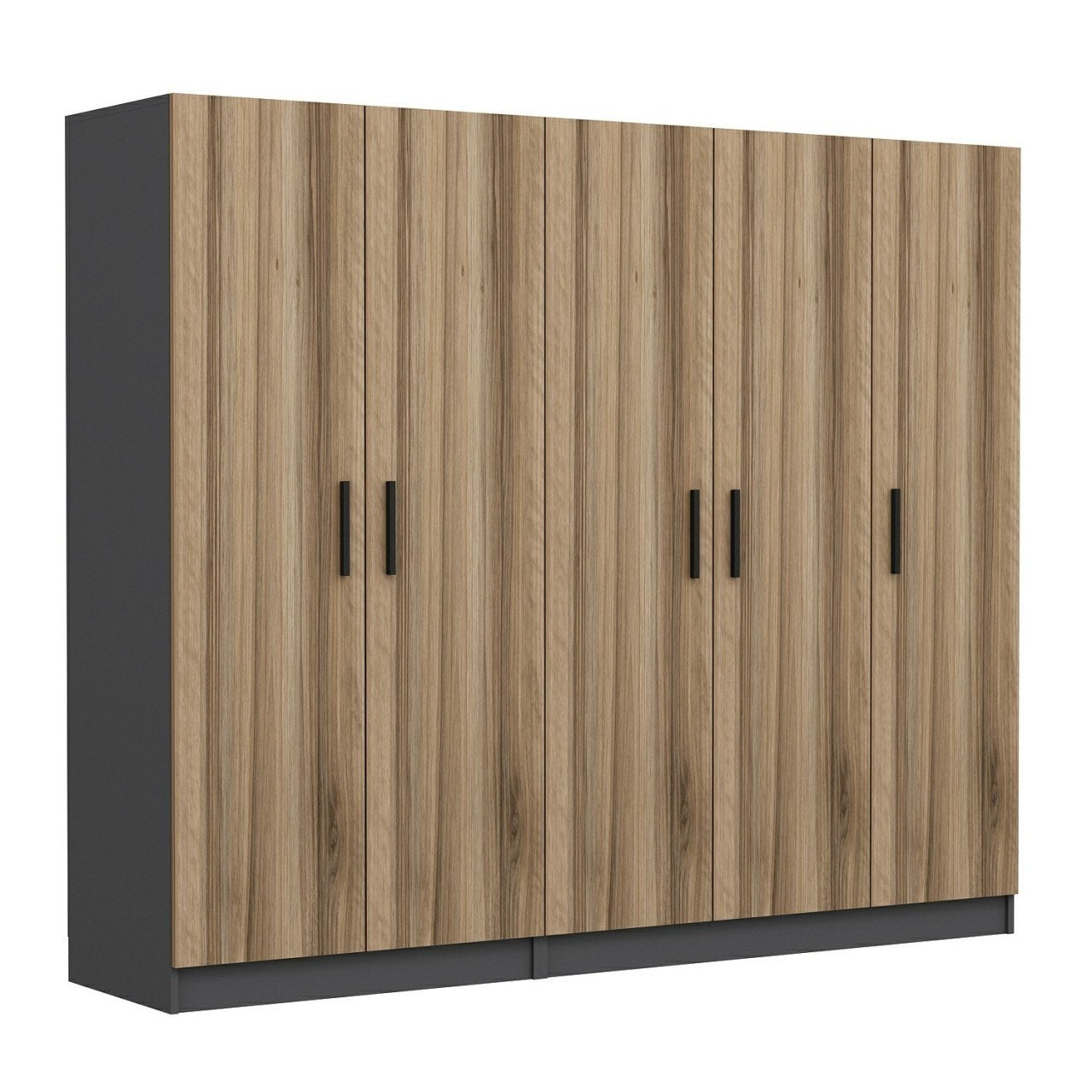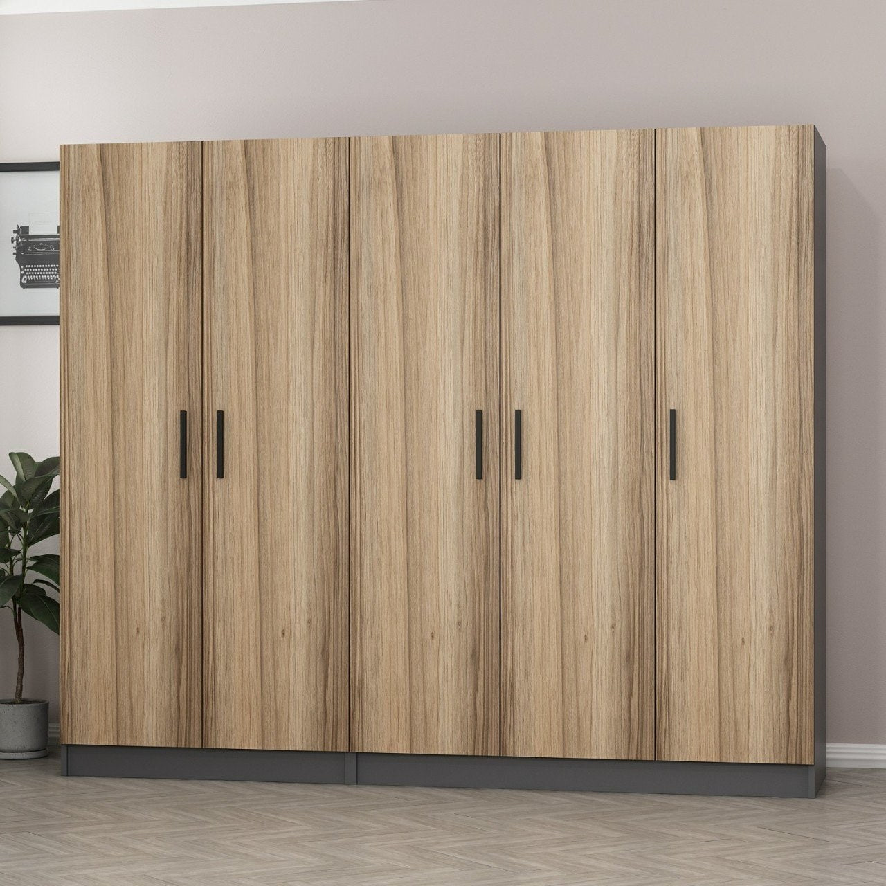 Com as suas dimensões generosas de 225 cm de largura, 190 cm de altura e 52 cm de profundidade, este roupeiro oferece muito espaço para organizar os seus pertences. As numerosas prateleiras proporcionam opções de arrumação versáteis, permitindo-lhe arrumar as suas roupas, acessórios e muito mais.