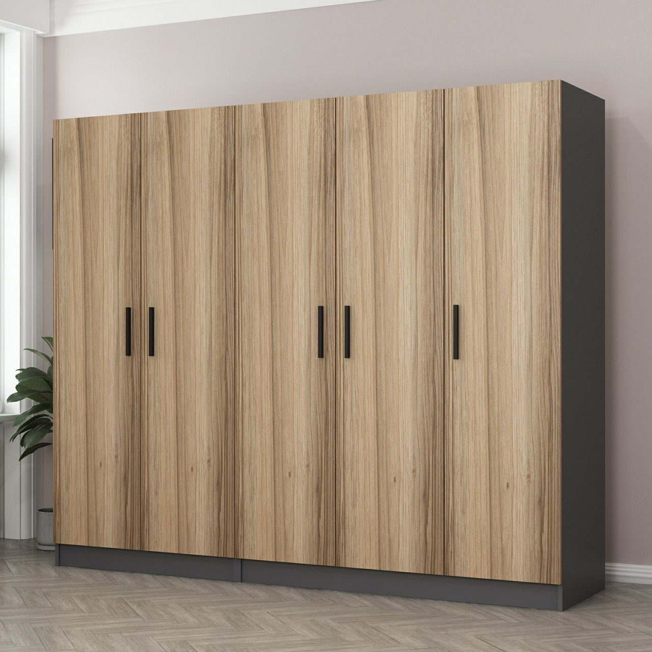 Fabricado com painéis de partículas 100% revestidos a melamina, este roupeiro foi concebido para durar. A espessura de 18 mm garante uma resistência e estabilidade excepcionais, dando-lhe a tranquilidade de saber que os seus pertences estão seguros e protegidos. A elegante cor dore acrescenta um toque de elegância a qualquer divisão, combinando facilmente com a decoração existente.