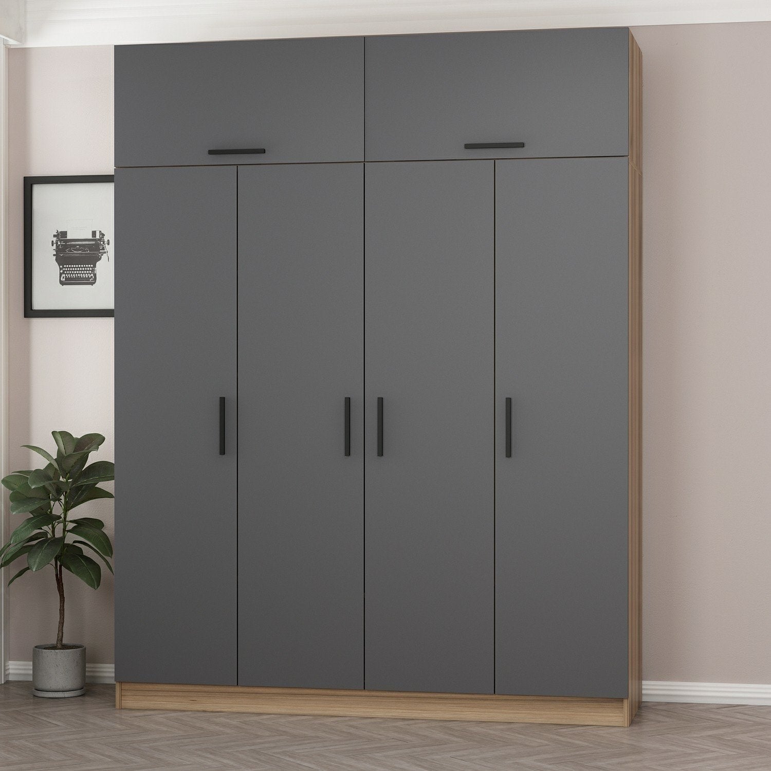 Fabricado com os melhores materiais, este roupeiro foi feito para durar. A espessura de 18 mm garante robustez e longevidade, enquanto o revestimento em melamina confere um acabamento elegante e sofisticado. A(s) sua(s) cor(es) antracite combinam facilmente com qualquer decoração, tornando-o uma adição versátil ao seu quarto.