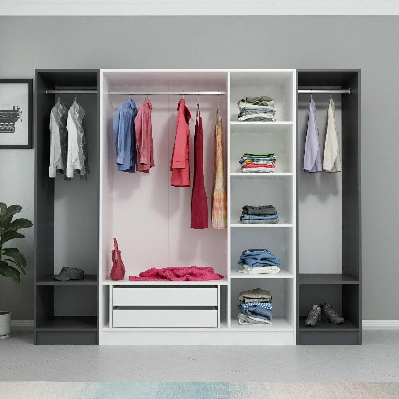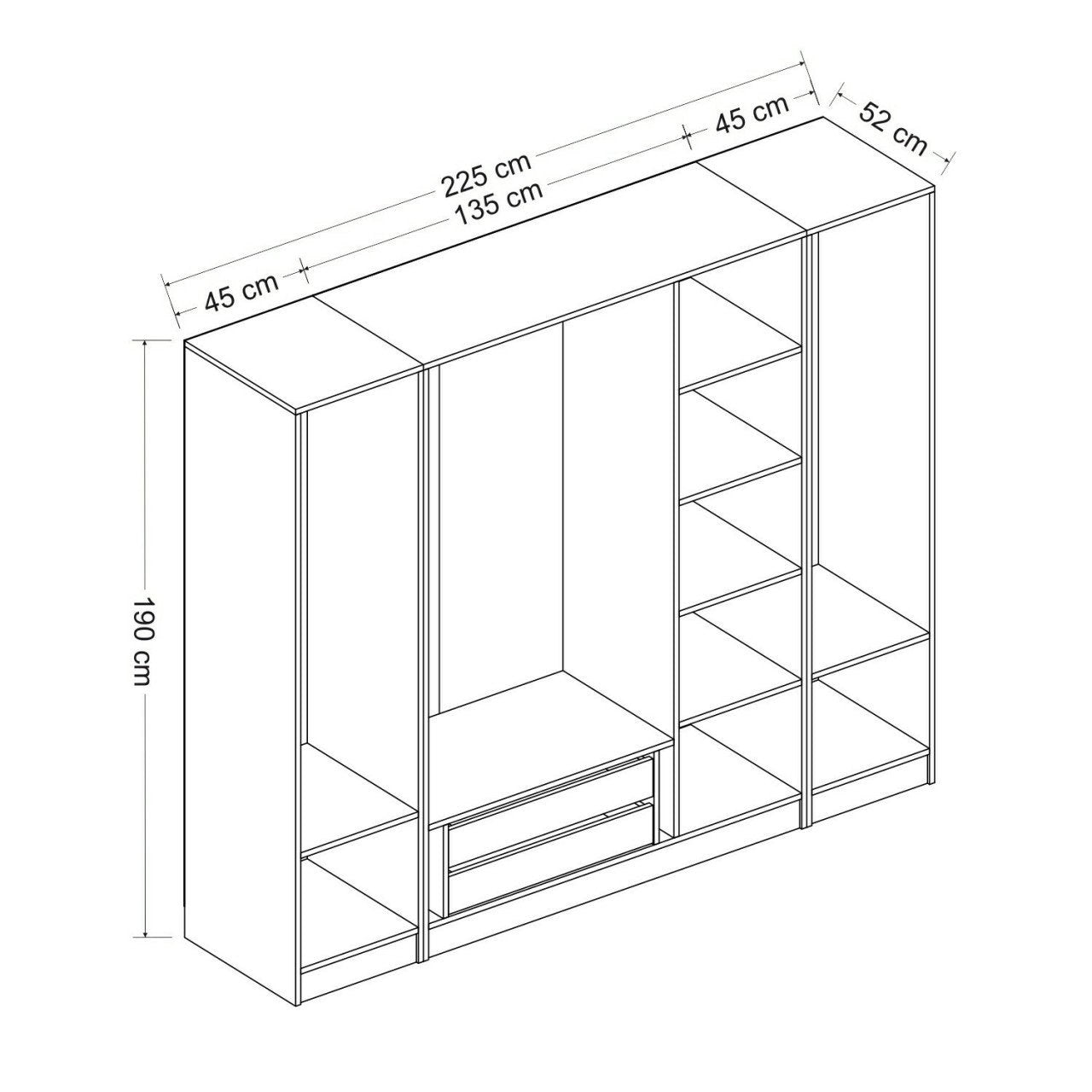 Com o seu design elegante e moderno, o nosso roupeiro complementa sem esforço qualquer decoração interior. A cor branca imaculada dá um toque de elegância e sofisticação ao seu quarto, criando uma atmosfera serena e convidativa. Quer o seu estilo seja contemporâneo ou clássico, este roupeiro é o complemento perfeito para o seu espaço.