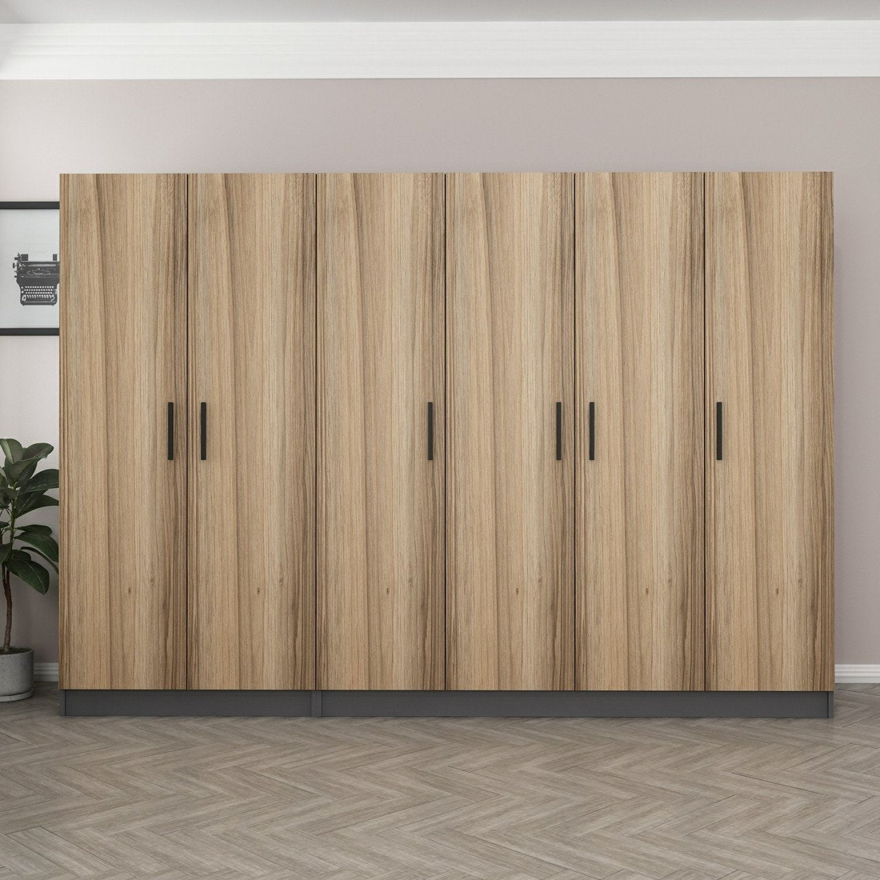 Fabricado com painéis de partículas 100% revestidos a melamina, o roupeiro dore garante uma durabilidade e longevidade excepcionais. A sua espessura de 18 mm assegura uma estrutura robusta e resistente que resistirá ao teste do tempo. Diga adeus aos roupeiros frágeis e abrace a fiabilidade do nosso produto de qualidade superior.