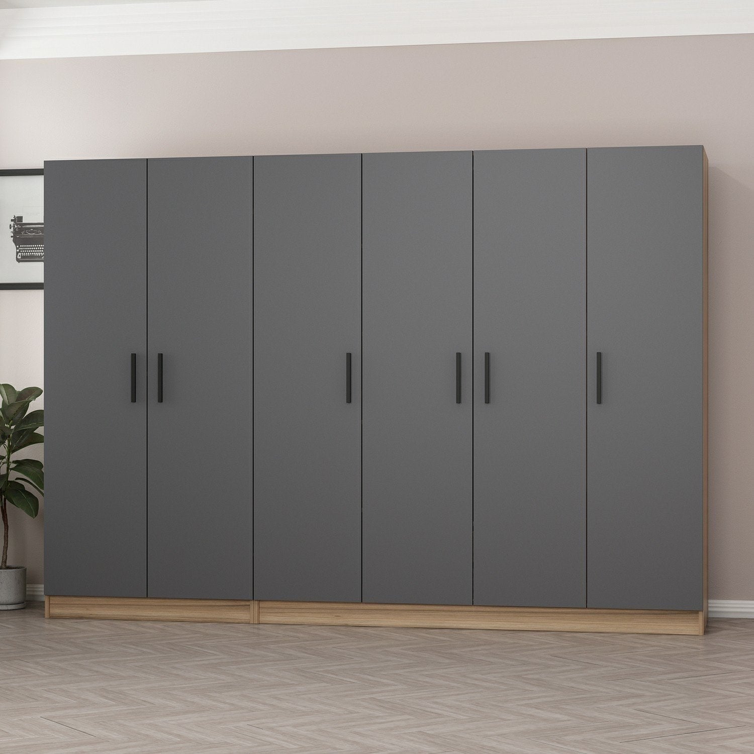 Está cansado de quartos desarrumados e desorganizados? Está na altura de dar um toque de elegância e organização ao seu espaço com o nosso roupeiro antracite. Esta deslumbrante peça de mobiliário não só é visualmente atraente, como também foi concebida para proporcionar uma ampla arrumação para todos os seus pertences.