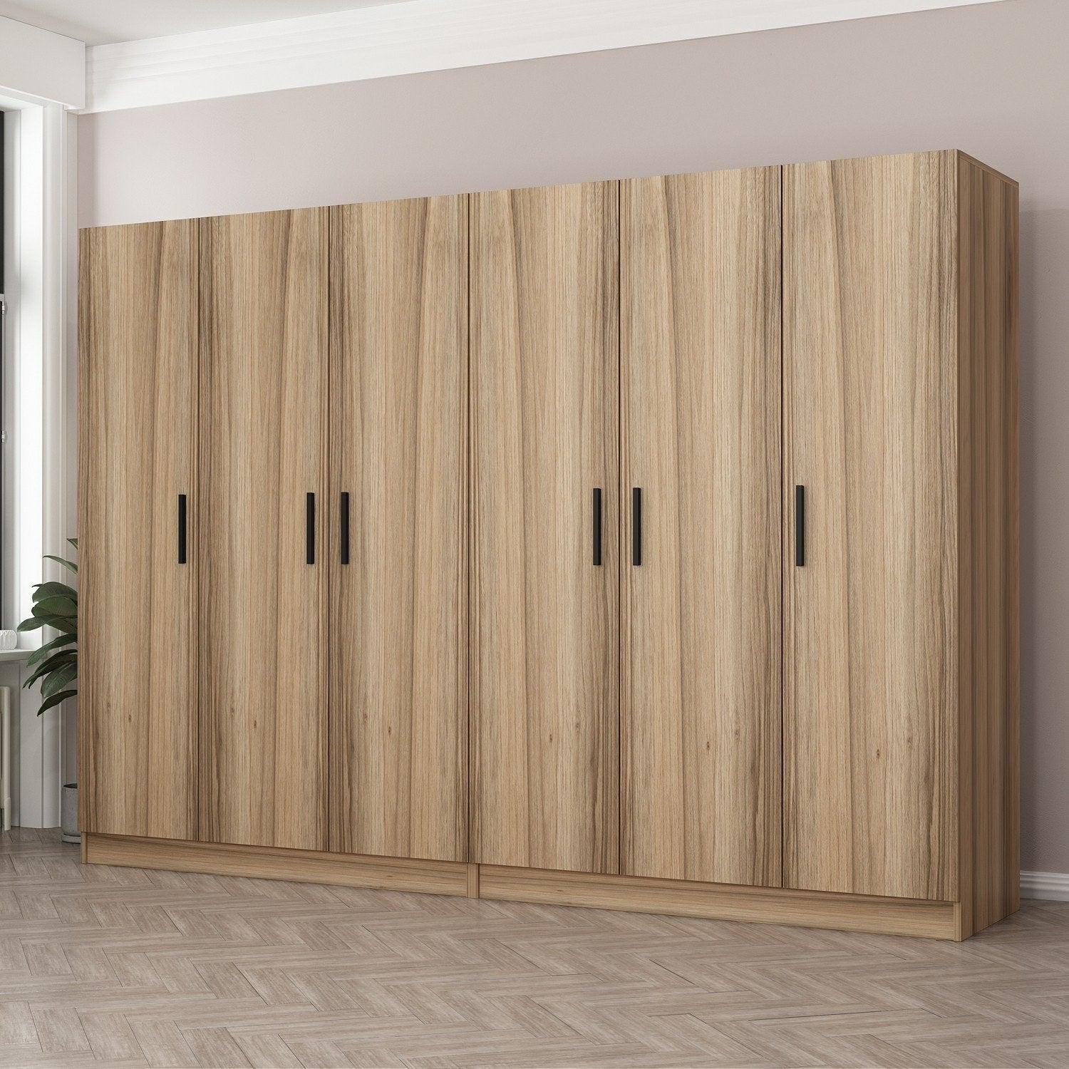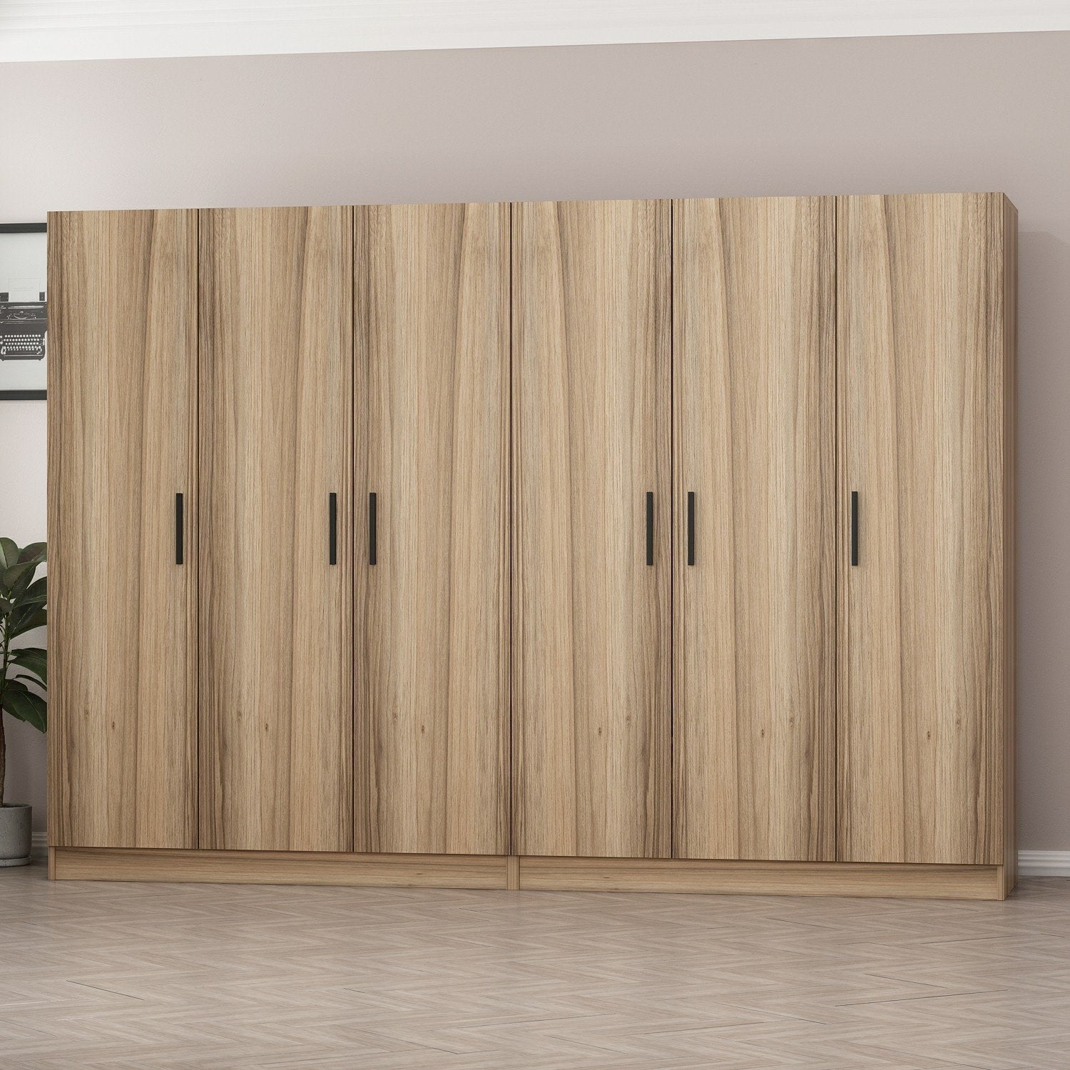 Com as suas dimensões generosas de 270 cm de largura, 210 cm de altura e 52 cm de profundidade, este roupeiro oferece um espaço abundante para organizar as suas roupas, acessórios e muito mais. As numerosas prateleiras proporcionam versatilidade, permitindo-lhe personalizar o interior de acordo com as suas necessidades. Finalmente, pode despedir-se do caos e dar as boas-vindas a um refúgio sem desordem.