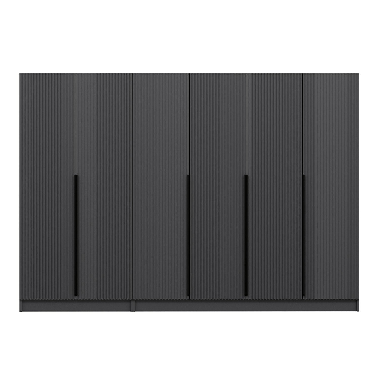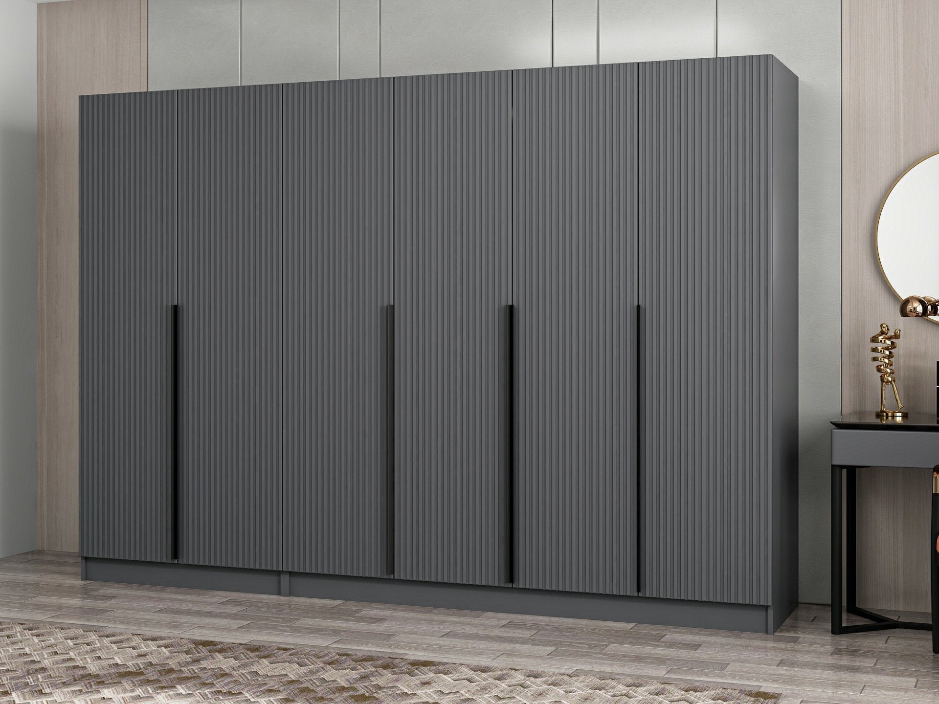 Com uma cor antracite elegante e sofisticada, o nosso roupeiro complementa sem esforço qualquer estilo de interior. O seu design intemporal acrescenta um toque de classe ao seu quarto, criando uma atmosfera serena e convidativa que o fará adorar chegar a casa.