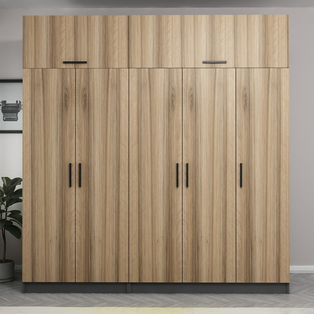 Com as suas dimensões generosas de 225 cm de largura, 235 cm de altura e 52 cm de profundidade, o nosso roupeiro oferece um espaço amplo para acomodar todos os seus pertences. Acabaram-se as dificuldades em encontrar um lugar para as suas roupas, acessórios e sapatos. Este roupeiro possui várias prateleiras, proporcionando-lhe a solução de arrumação perfeita para manter os seus artigos organizados e facilmente acessíveis.