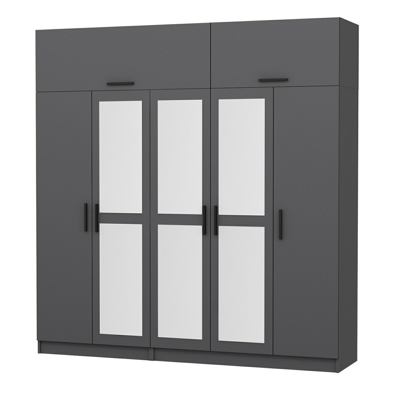 O design elegante do roupeiro é realçado pela(s) sua(s) deslumbrante(s) cor(es) antracite. Esta tonalidade moderna e versátil complementa sem esforço qualquer estilo de interior, acrescentando um toque de elegância ao seu espaço. Quer a sua casa tenha uma estética contemporânea ou tradicional, este roupeiro integrar-se-á perfeitamente.