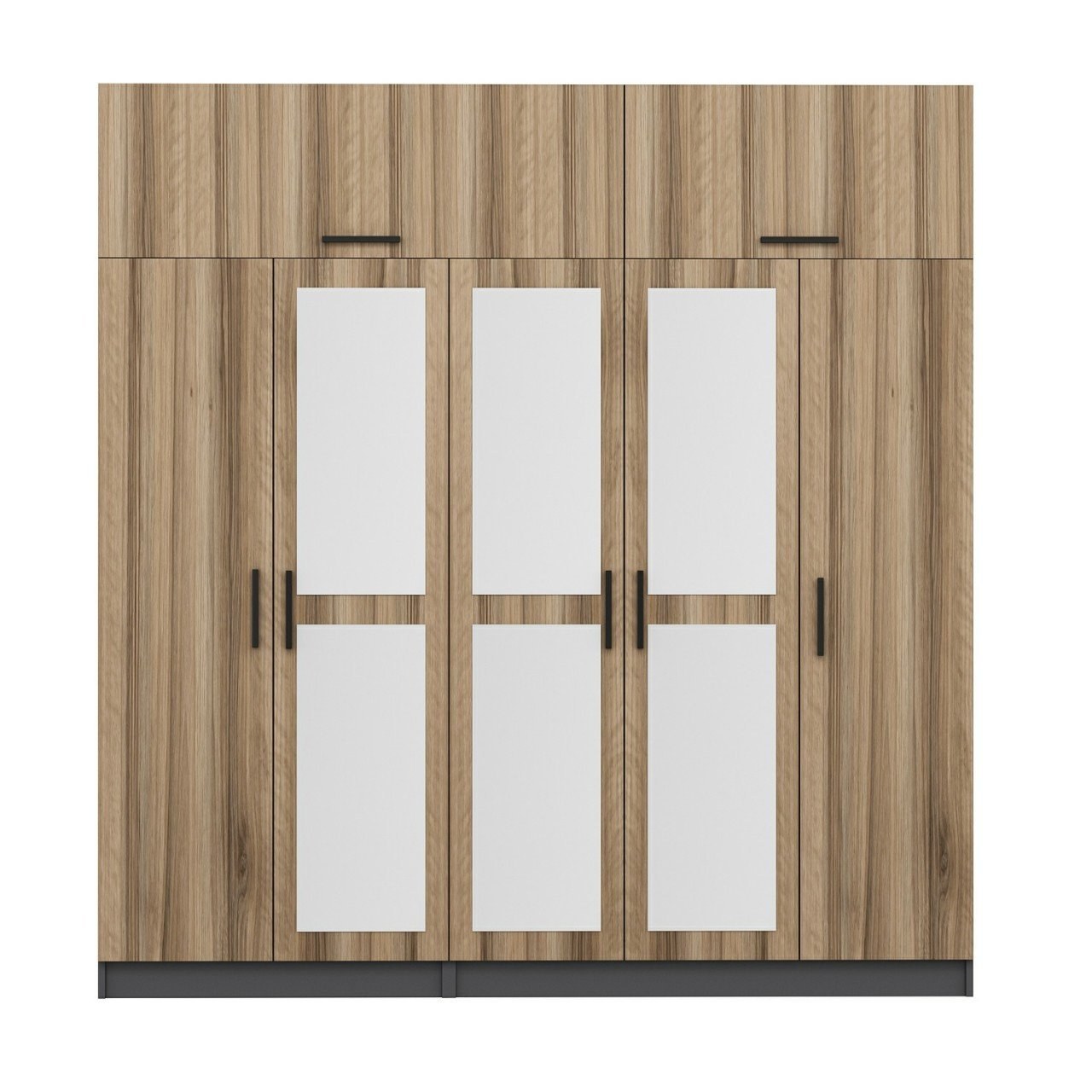 Com as suas dimensões generosas de 225 cm de largura, 235 cm de altura e 52 cm de profundidade, o nosso roupeiro dore oferece muito espaço para organizar as suas roupas, acessórios e muito mais. As numerosas prateleiras proporcionam versatilidade e permitem-lhe personalizar o interior de acordo com as suas necessidades específicas.