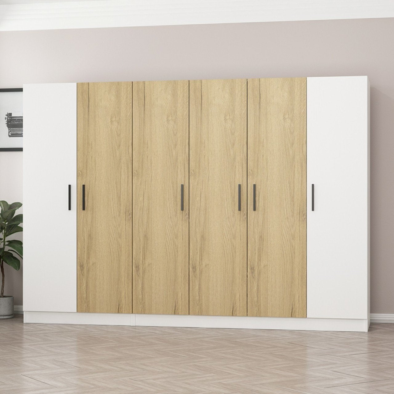 Com uma largura de 270 cm, altura de 190 cm e profundidade de 52 cm, este guarda-roupa oferece amplo espaço de armazenamento para todas as suas roupas e acessórios. As numerosas prateleiras proporcionam bastante espaço para manter seus itens organizados e arrumados, facilitando a busca pelo que você precisa quando precisa.