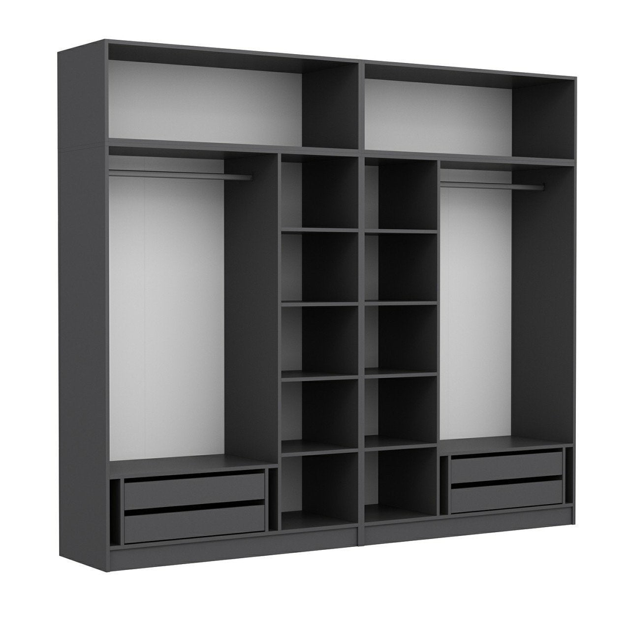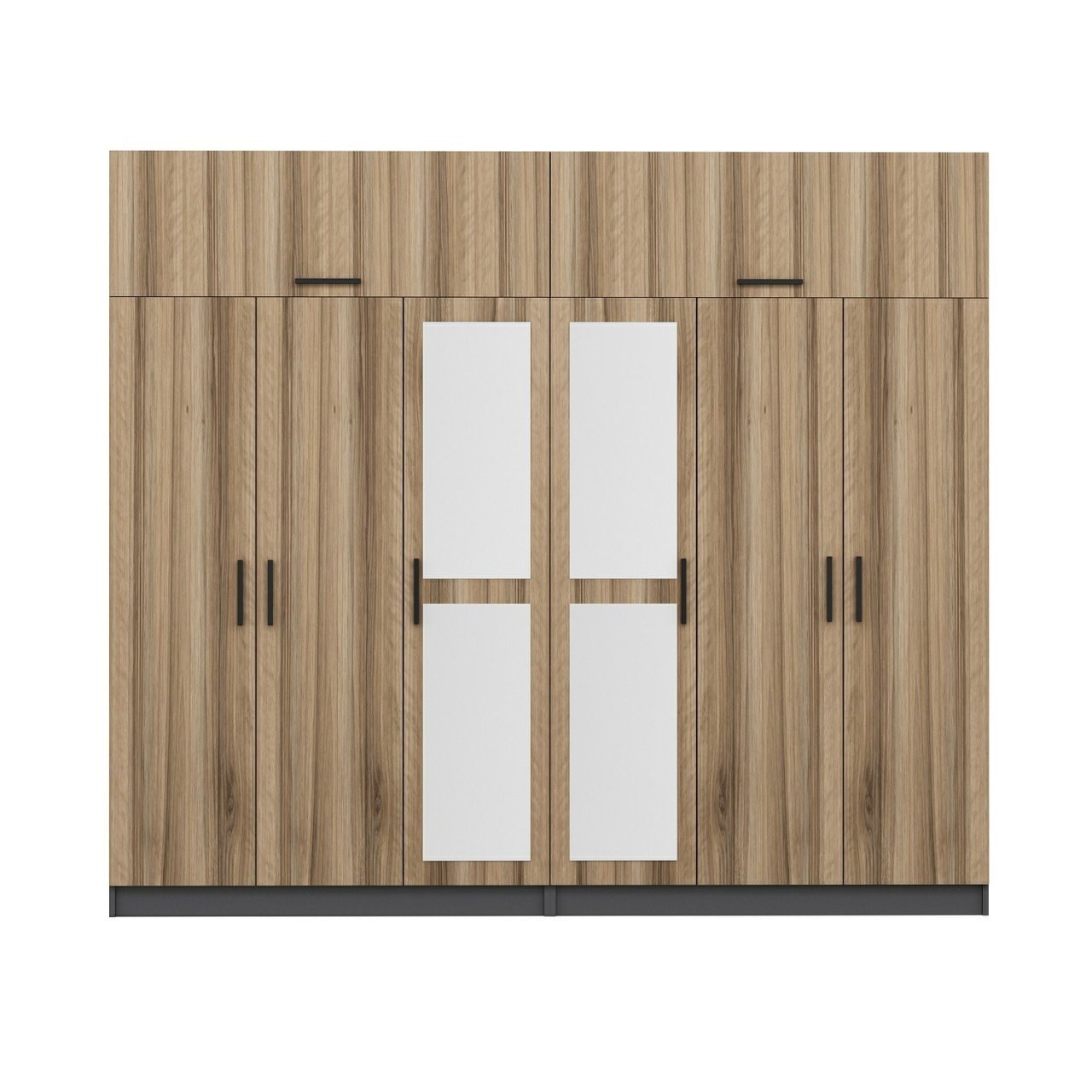 Com as suas dimensões generosas de 270 cm de largura, 255 cm de altura e 52 cm de profundidade, este roupeiro oferece um espaço abundante para acomodar todos os seus pertences. Acabaram-se as dificuldades em arrumar a roupa, os sapatos e os acessórios. O nosso roupeiro tem várias prateleiras, permitindo-lhe organizar os seus artigos sem esforço.