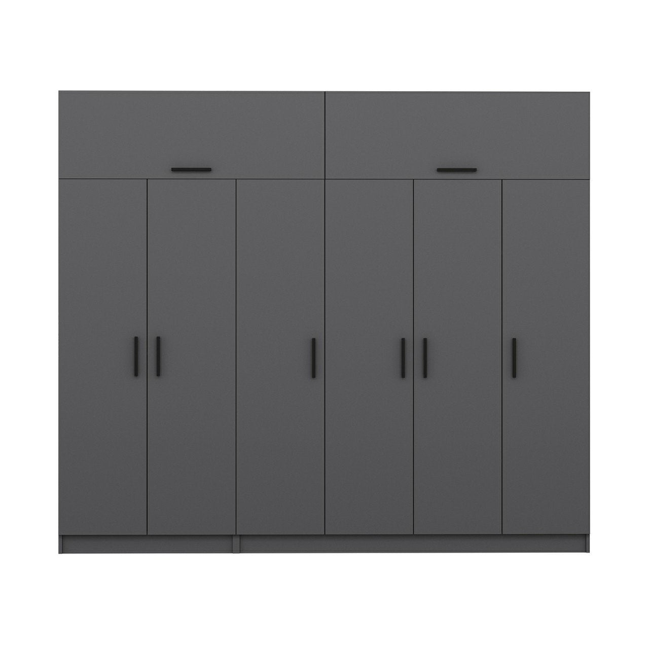 A cor antracite do roupeiro dá um toque de sofisticação a qualquer divisão. O seu design elegante e moderno combina sem esforço com qualquer decoração, elevando o apelo estético do seu espaço. Prepare-se para impressionar os seus convidados com um roupeiro que exala estilo e elegância.
