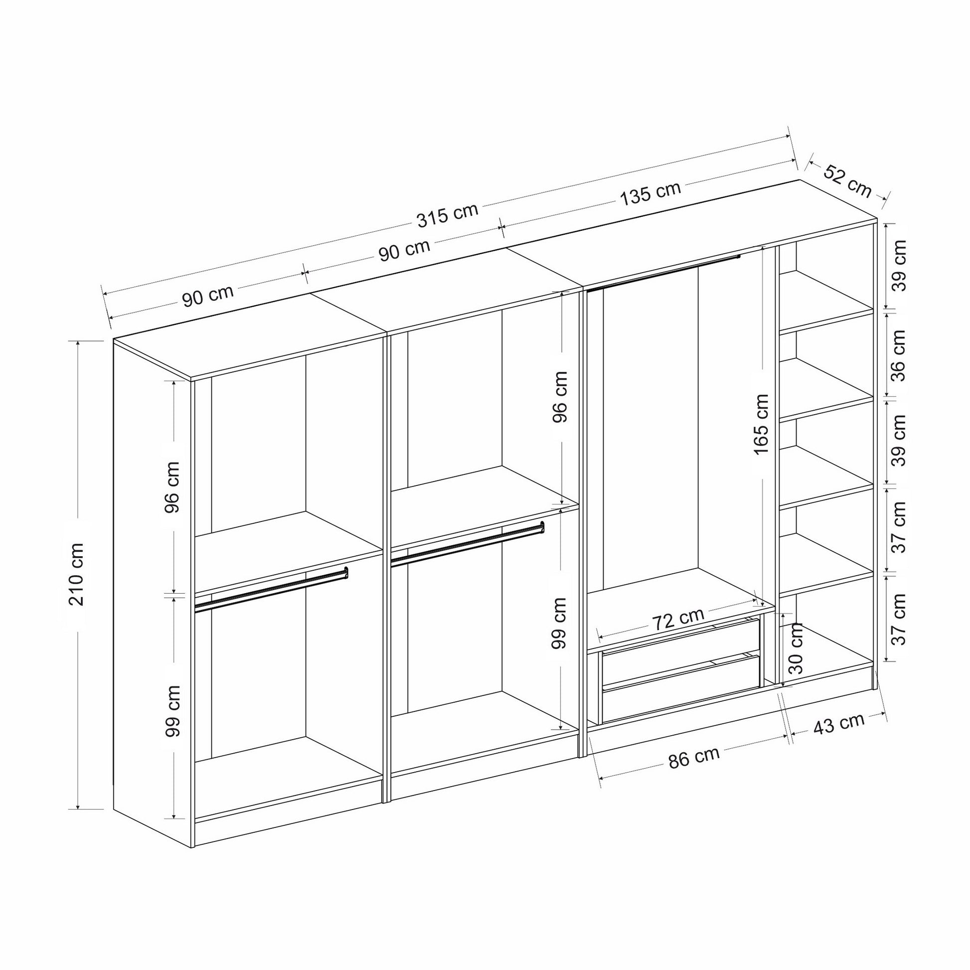 Com as suas dimensões generosas, este roupeiro oferece muito espaço para guardar todos os seus pertences. Desde roupa e sapatos a acessórios e muito mais, nunca ficará sem espaço. As inúmeras prateleiras proporcionam uma organização prática, permitindo-lhe encontrar e aceder facilmente aos seus artigos sempre que precisar deles.