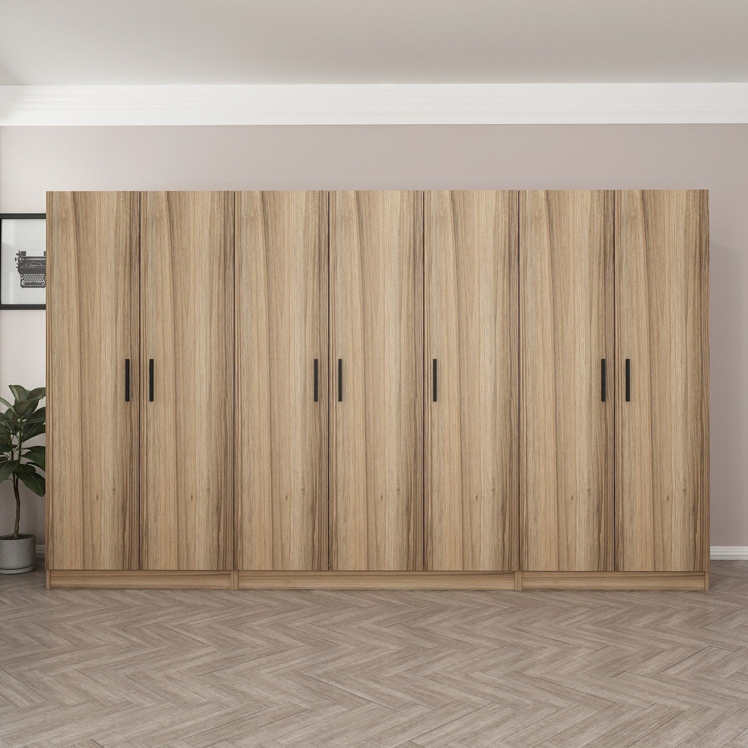Com as suas dimensões generosas de 315 cm de largura, 210 cm de altura e 52 cm de profundidade, este roupeiro oferece muito espaço para organizar as suas roupas, acessórios e muito mais. As numerosas prateleiras proporcionam versatilidade e comodidade, permitindo-lhe personalizar a arrumação de acordo com as suas necessidades.