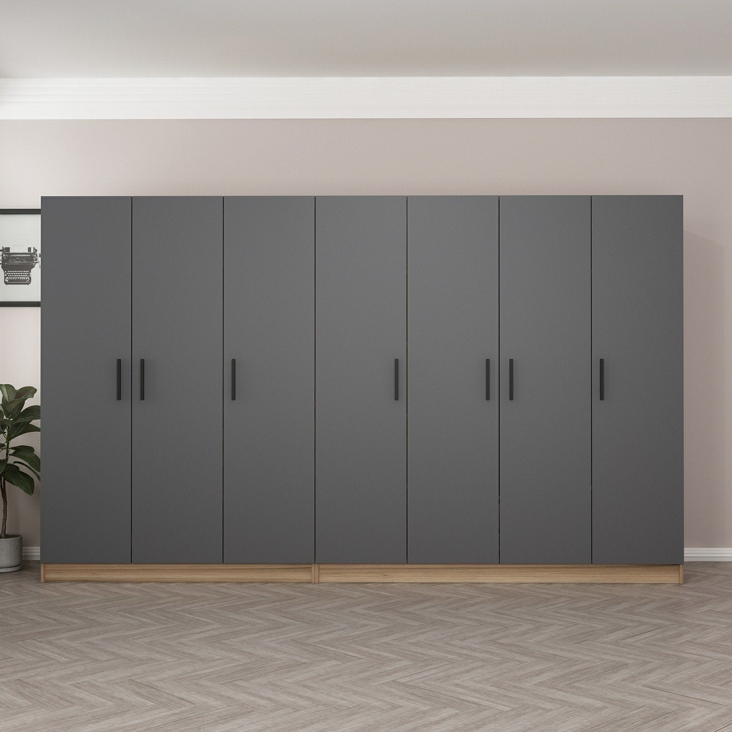 Com as suas dimensões generosas de 315 cm de largura, 210 cm de altura e 52 cm de profundidade, este roupeiro oferece muito espaço para acomodar toda a sua coleção de roupeiros. As numerosas prateleiras proporcionam opções de arrumação práticas para as suas roupas, acessórios e muito mais. Finalmente, pode despedir-se do caos e abraçar um estilo de vida organizado.