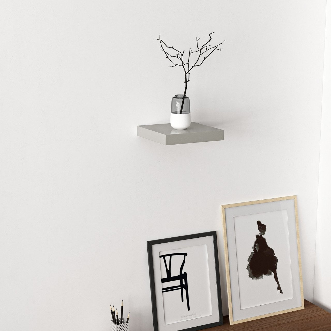 Com a sua elegante cor cinzenta, esta prateleira de parede integra-se facilmente em qualquer tema de interior, acrescentando um toque de sofisticação e charme à sua sala de estar, quarto ou escritório. O seu tamanho compacto de 23 cm de largura, 3,6 cm de altura e 23 cm de profundidade torna-a perfeita para espaços pequenos, permitindo-lhe maximizar as suas opções de arrumação sem sacrificar o estilo.
