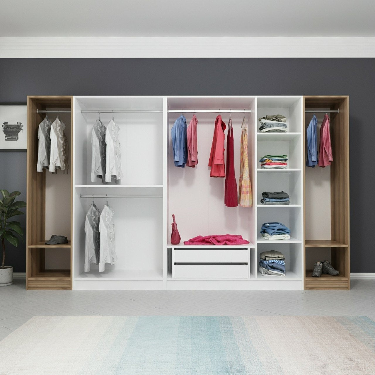 Com inúmeras prateleiras e um espaço amplo, este roupeiro foi concebido para o ajudar a manter a sua roupa, sapatos e acessórios em ordem. Acabou-se o remexer em pilhas de roupa para encontrar a camisa que procurava. Tudo terá o seu próprio lugar neste espaçoso roupeiro.