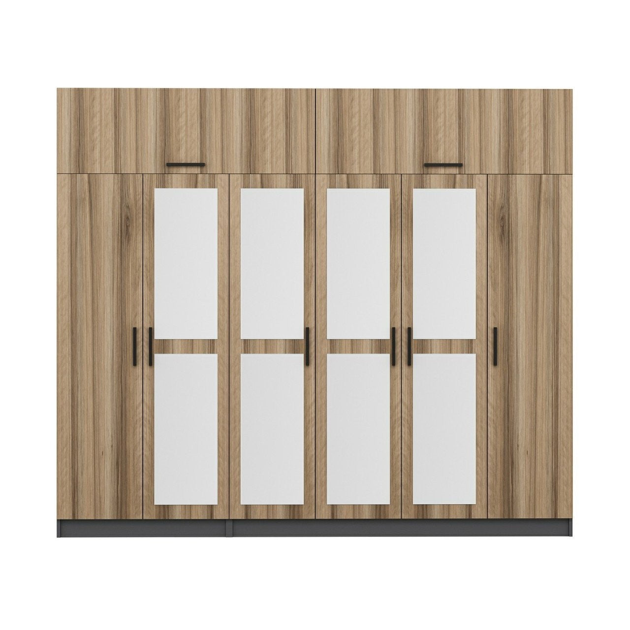 Com uma espessura de 18 mm e dimensões de 270cm x 255cm x 52cm, este guarda -roupa oferece muito espaço para todas as suas roupas, sapatos e acessórios. As inúmeras prateleiras oferecem amplas opções de armazenamento, enquanto a opção de corrigi -lo na parede garante estabilidade e segurança.