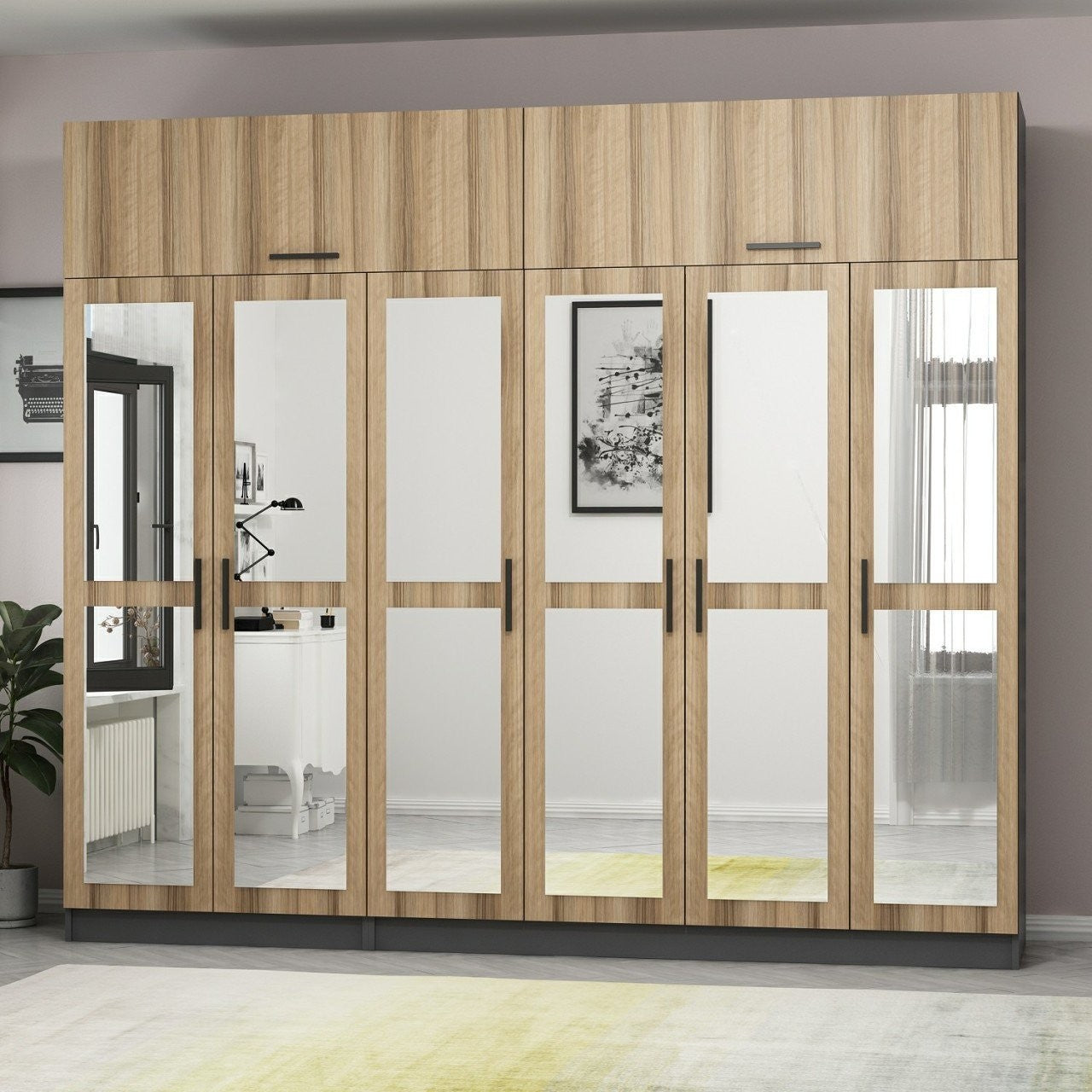 As cores de nogueira e antracite deste guarda -roupa acrescentam um toque de elegância a qualquer sala. Se você tem uma decoração moderna ou tradicional, este guarda -roupa se misturará perfeitamente e aumentará a aparência geral do seu espaço.