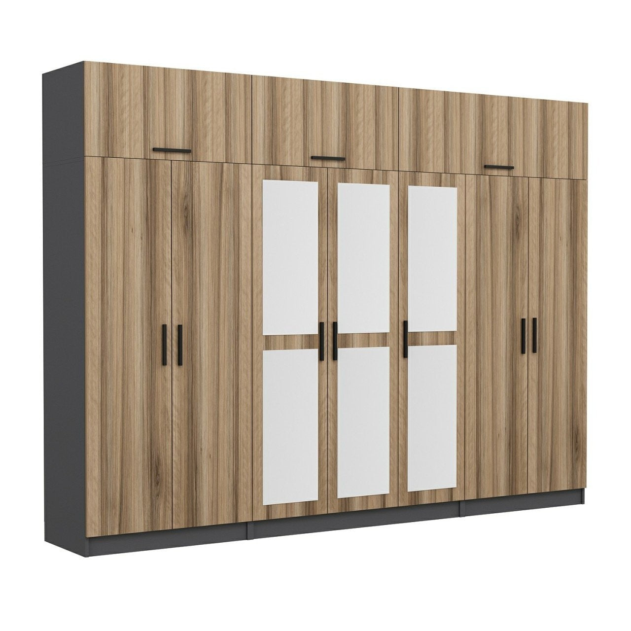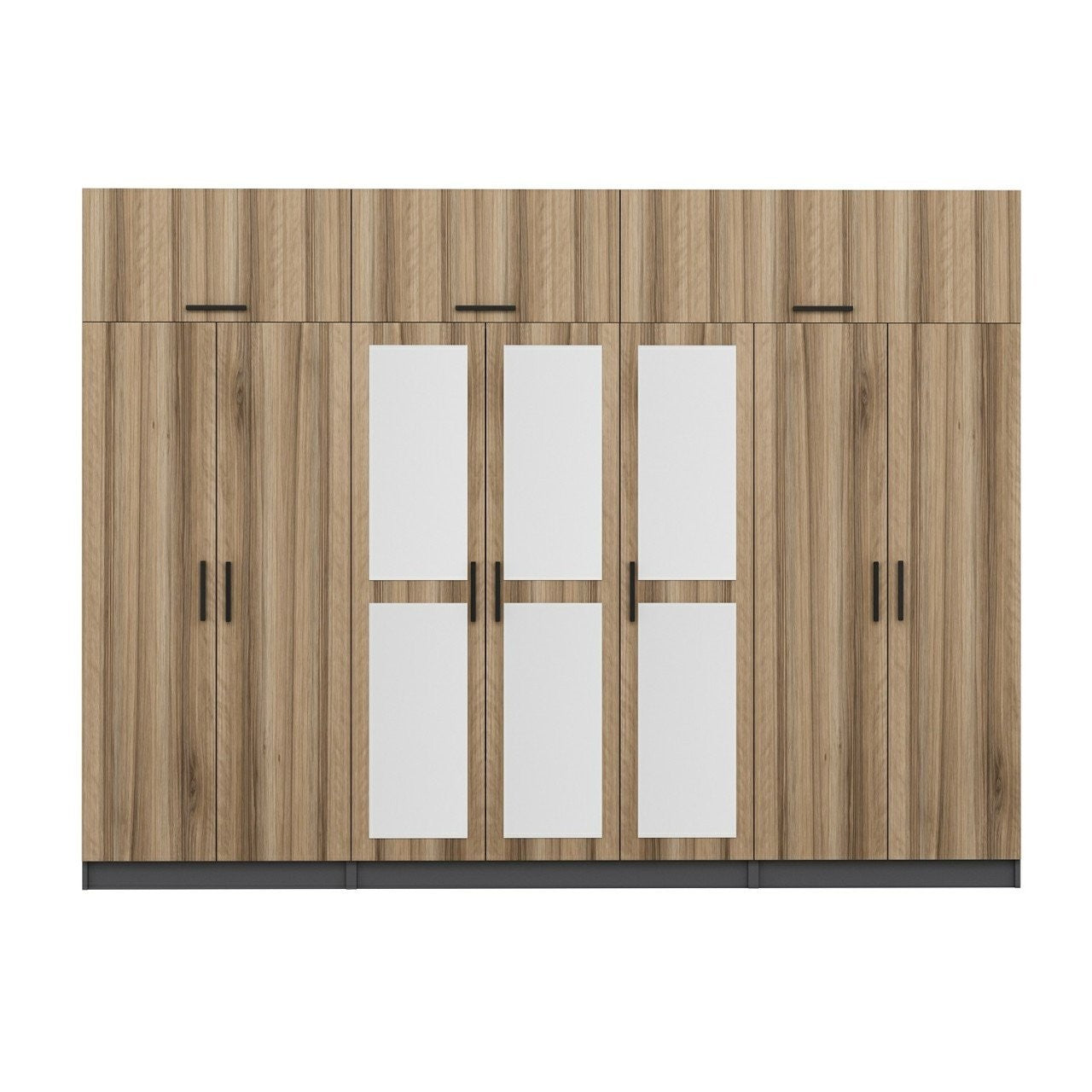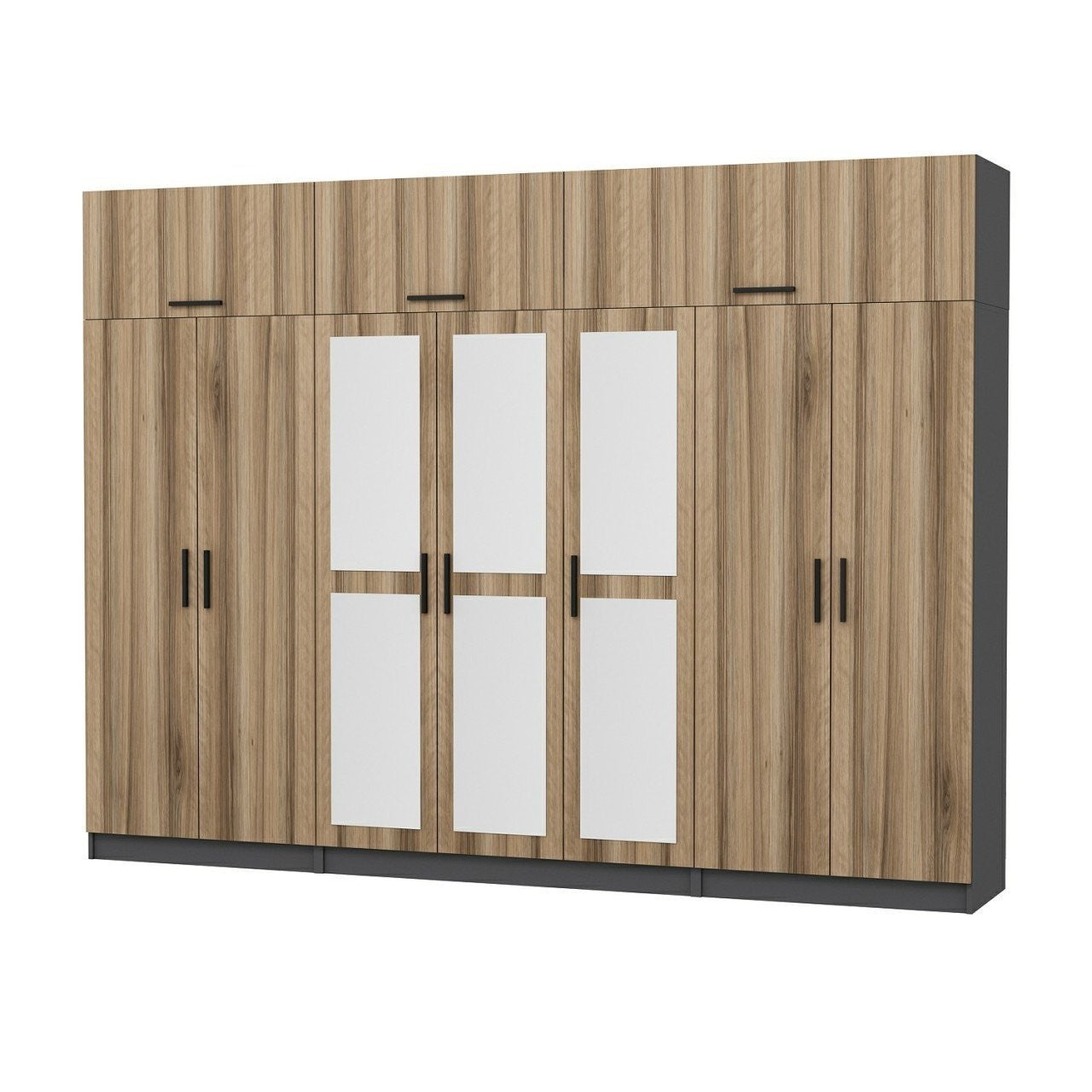 Com uma largura de 315 cm, altura de 235 cm e profundidade de 52 cm, este guarda -roupa oferece amplo espaço de armazenamento para todas as suas roupas e acessórios. As cores de nogueira e antracite adicionam um toque de elegância a qualquer sala, enquanto as numerosas prateleiras oferecem muito espaço para seus pertences.