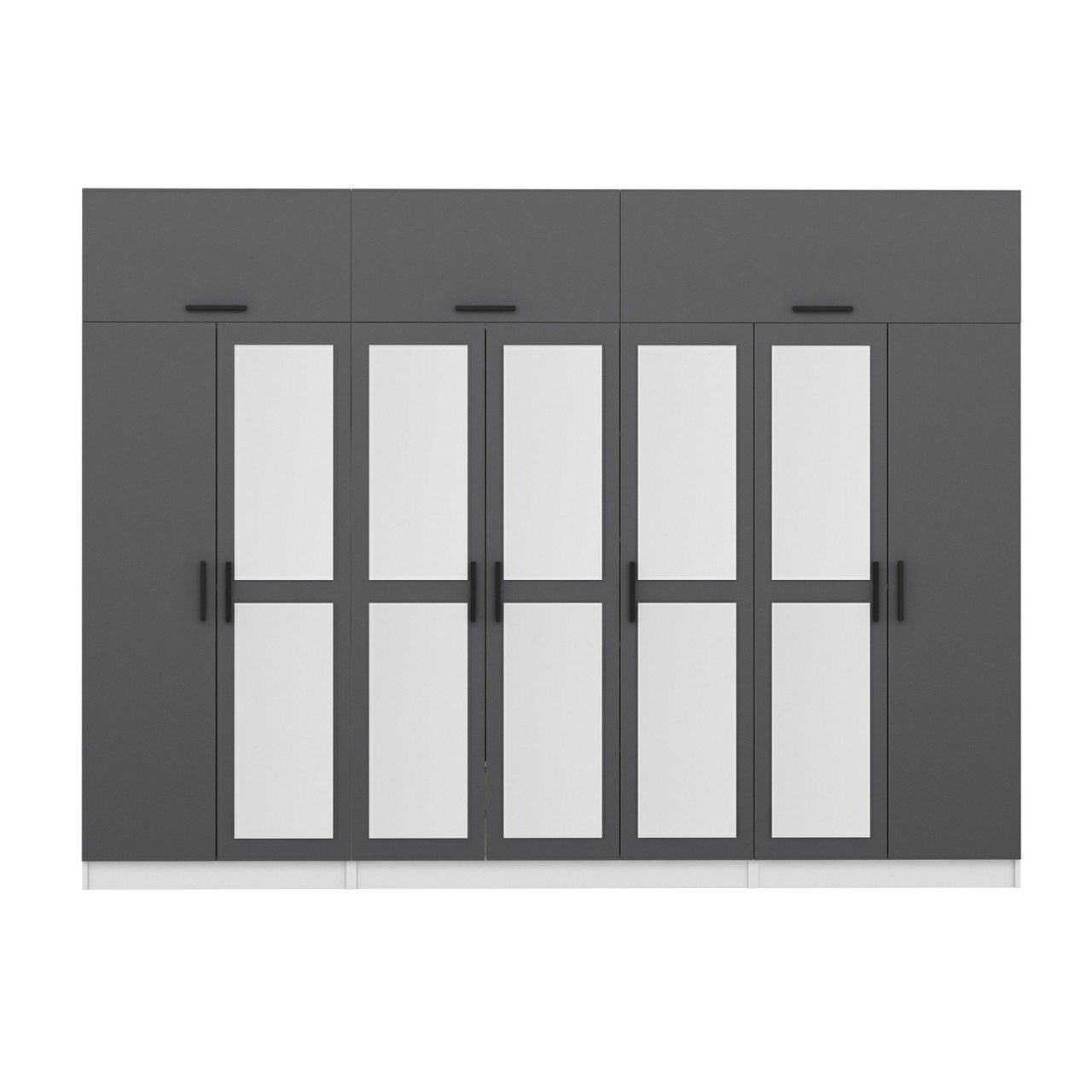 Com um design elegante com uma combinação de antracite e cores brancas, este guarda -roupa elevará instantaneamente a aparência de qualquer sala. Seu tamanho generoso de 315 cm de largura, 235 cm de altura e 52 cm de profundidade fornecem amplo espaço de armazenamento para todas as suas roupas, sapatos e acessórios.