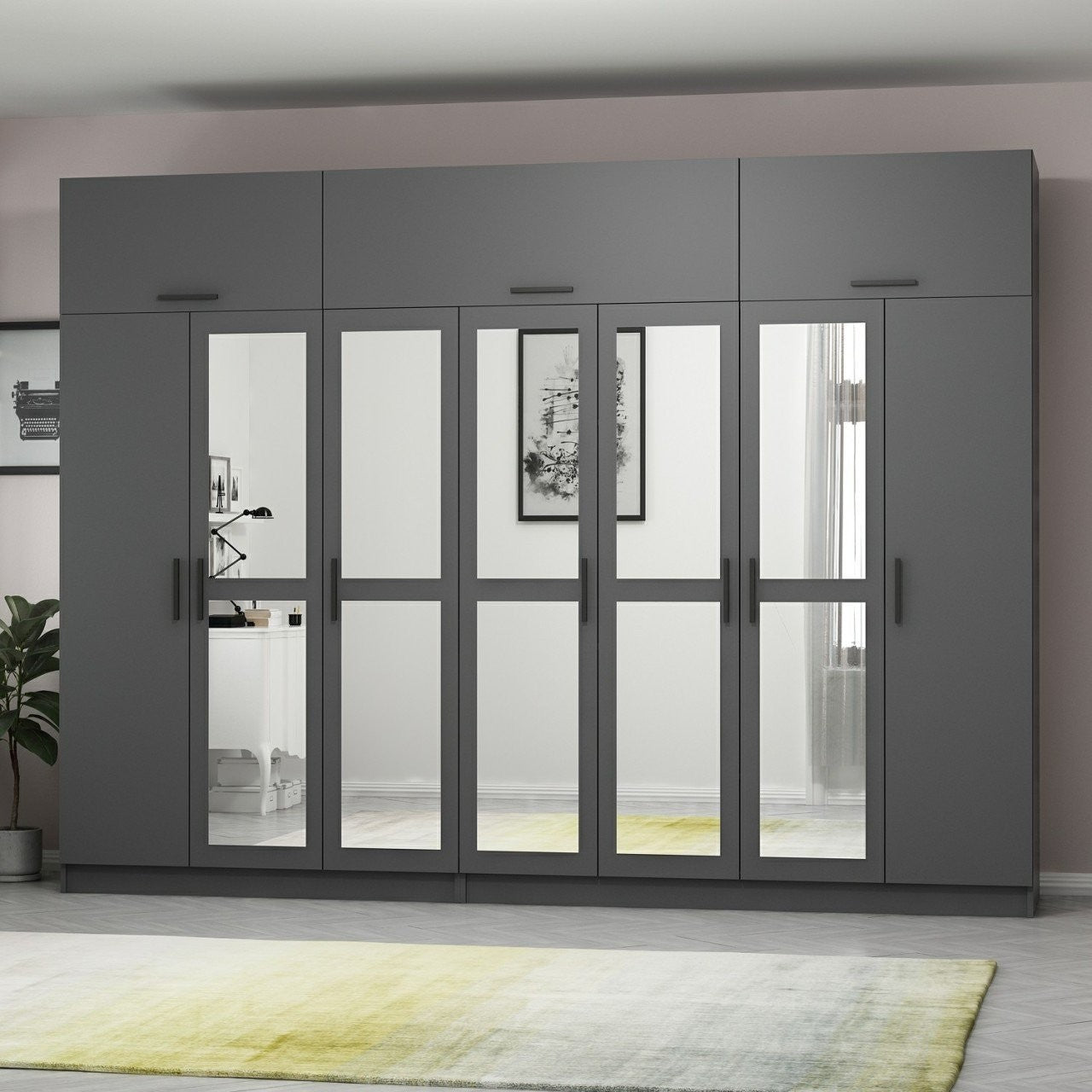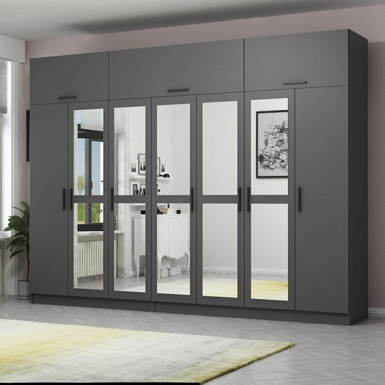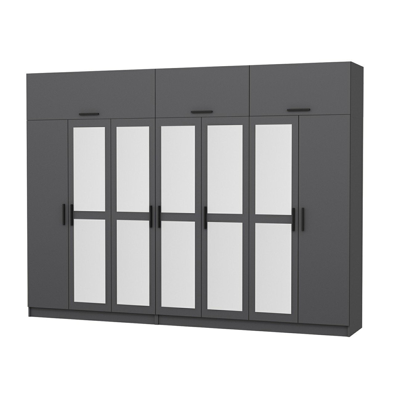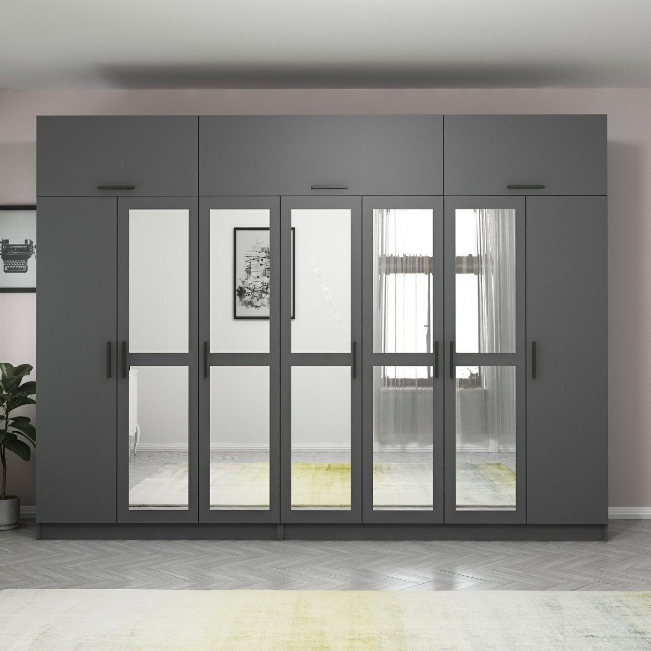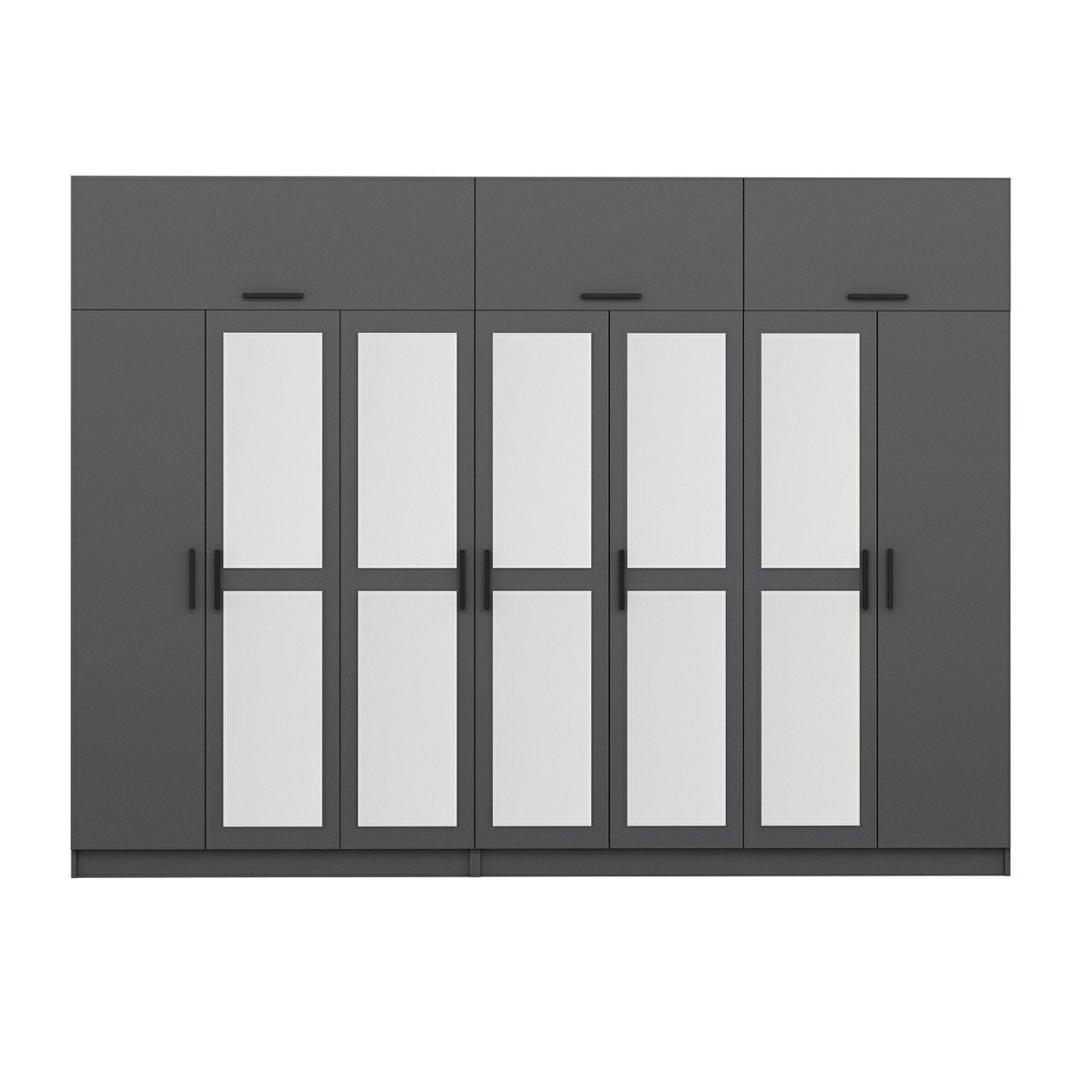 Com uma largura de 315 cm, altura de 235 cm e profundidade de 52 cm, este guarda -roupa oferece amplo espaço de armazenamento para todas as suas roupas e acessórios. As numerosas prateleiras oferecem muito espaço para manter seus itens organizados e facilmente acessíveis. Se você tem uma grande coleção de roupas ou apenas precisa de espaço de armazenamento extra, este guarda -roupa é a solução perfeita.