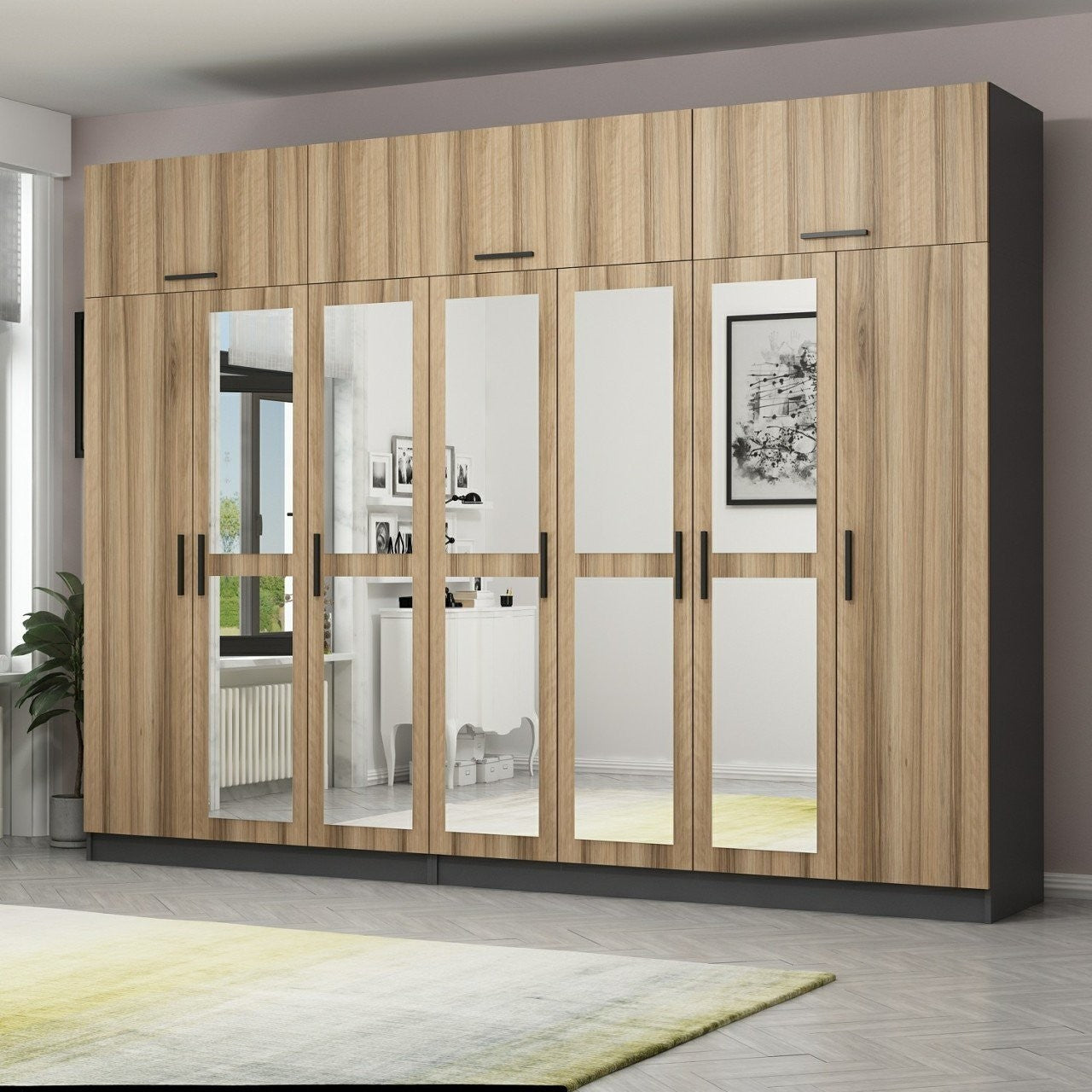 O guarda -roupa apresenta uma bela combinação de nozes e cores antracite, adicionando um toque moderno e sofisticado ao seu espaço. Se você tem uma decoração contemporânea ou tradicional, este guarda -roupa se misturará perfeitamente e aprimorará a aparência geral do seu quarto.