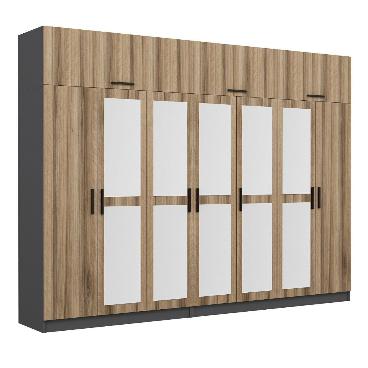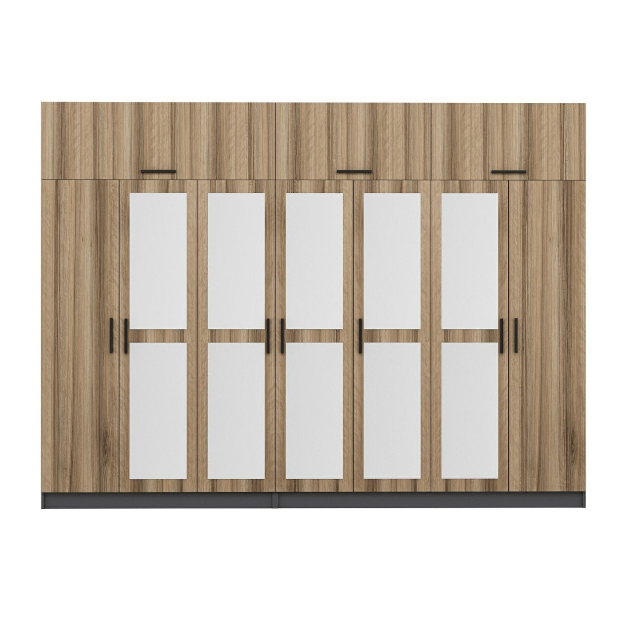 Com uma largura de 315 cm, altura de 235 cm e profundidade de 52 cm, este guarda -roupa oferece amplo espaço para armazenar todas as suas roupas, sapatos e acessórios. As inúmeras prateleiras oferecem muitas opções de armazenamento, mantendo seus pertences arrumados e arrumados. Além disso, o guarda -roupa pode ser fixado na parede para maior estabilidade e segurança.