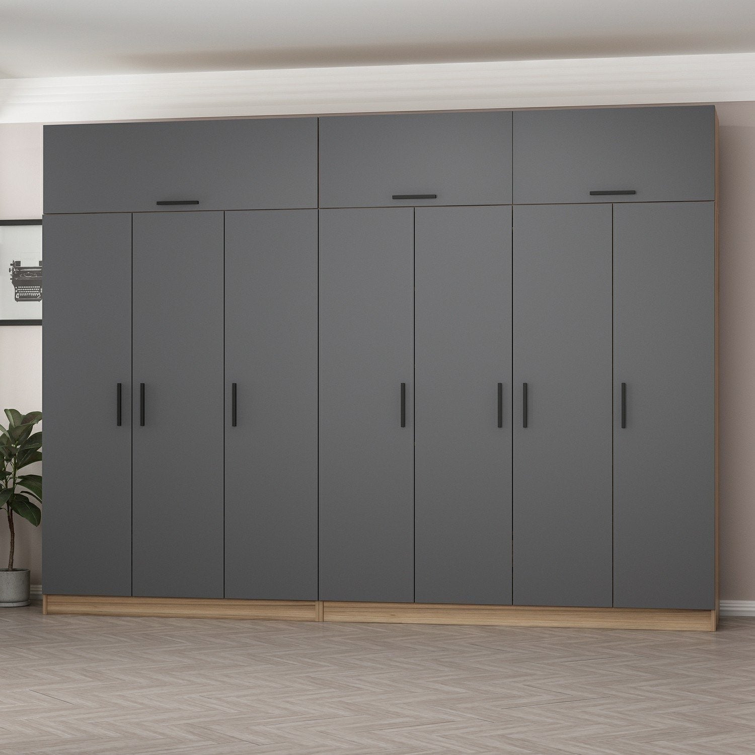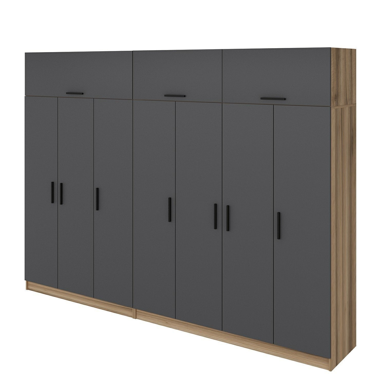 Com uma largura de 315 cm, altura de 235 cm e profundidade de 52 cm, este guarda -roupa oferece amplo espaço de armazenamento para todos os seus pertences. As numerosas prateleiras oferecem muito espaço para suas roupas, sapatos e acessórios, mantendo tudo elegante e arrumado. Diga adeus a vasculhar pilhas de roupas e olá para encontrar sem esforço o que você precisa.