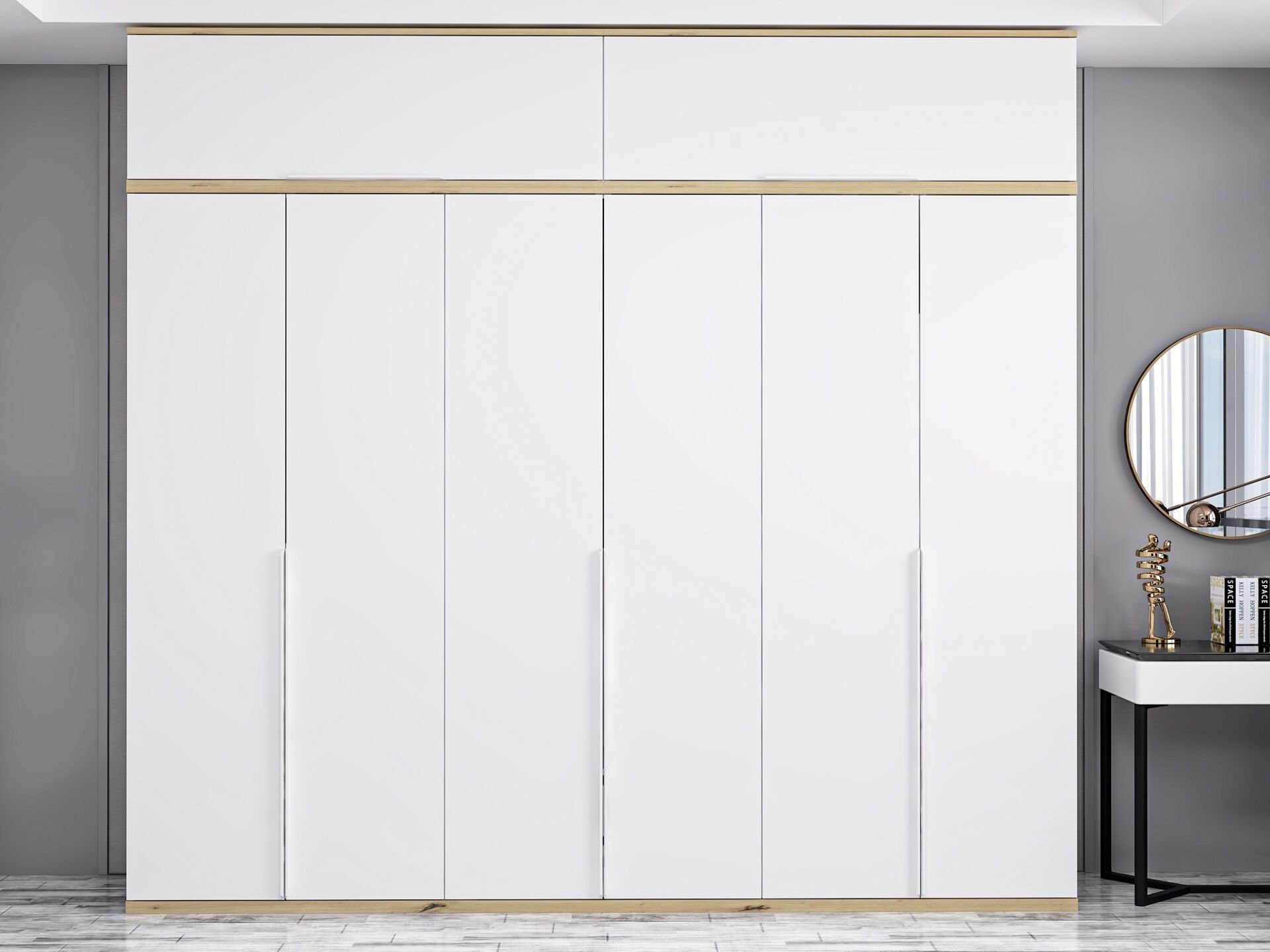 Não se preocupe com a montagem complicada - este guarda -roupa pode ser facilmente fixado na parede para adicionar estabilidade. Com sua espessura de 18 mm e dimensões de 270 cm x 206 cm x 52 cm, este guarda -roupa é espaçoso o suficiente para manter todos os seus itens essenciais sem ocupar muito espaço no seu quarto.